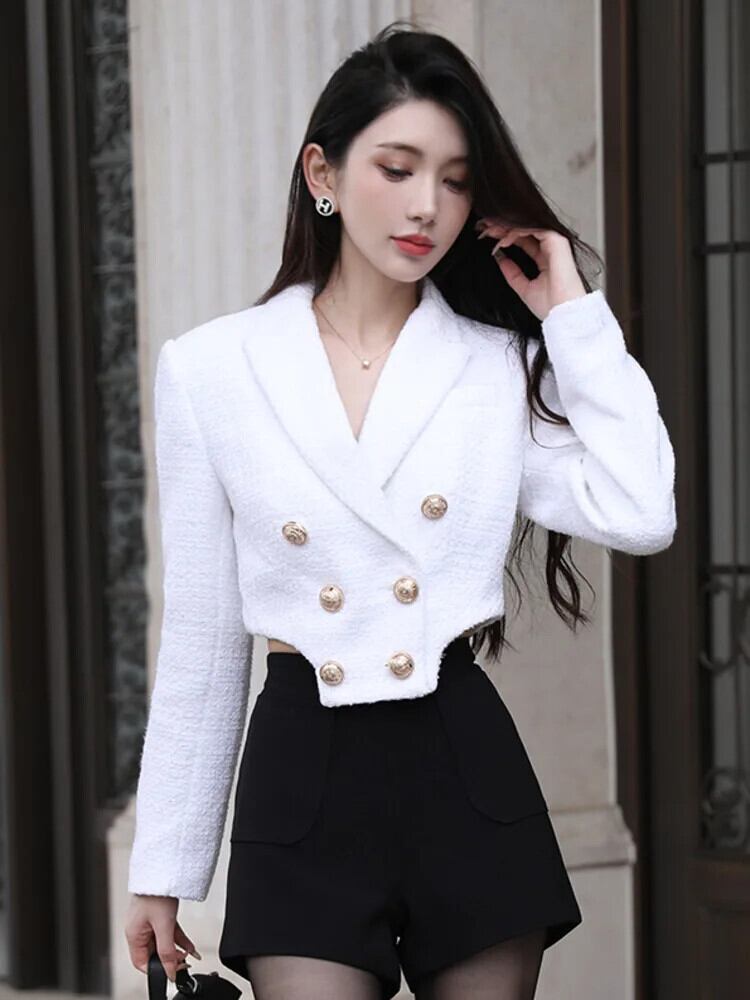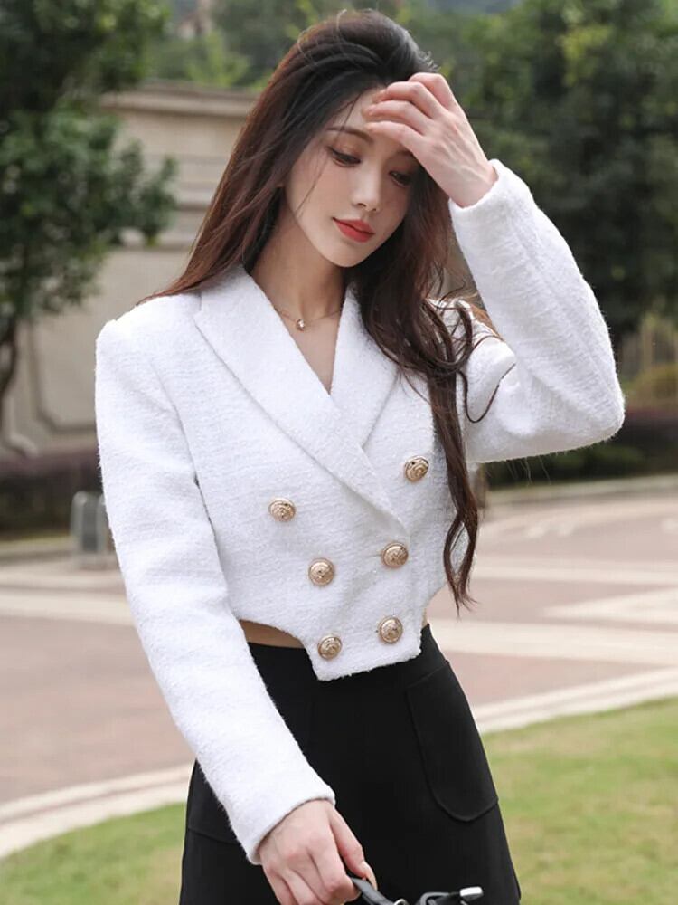 秋冬ジャケットストリートショートツイードコート Casacos フレンチアウタークロップトップ Chaquetas オータム 秋物 ウィンター 冬物