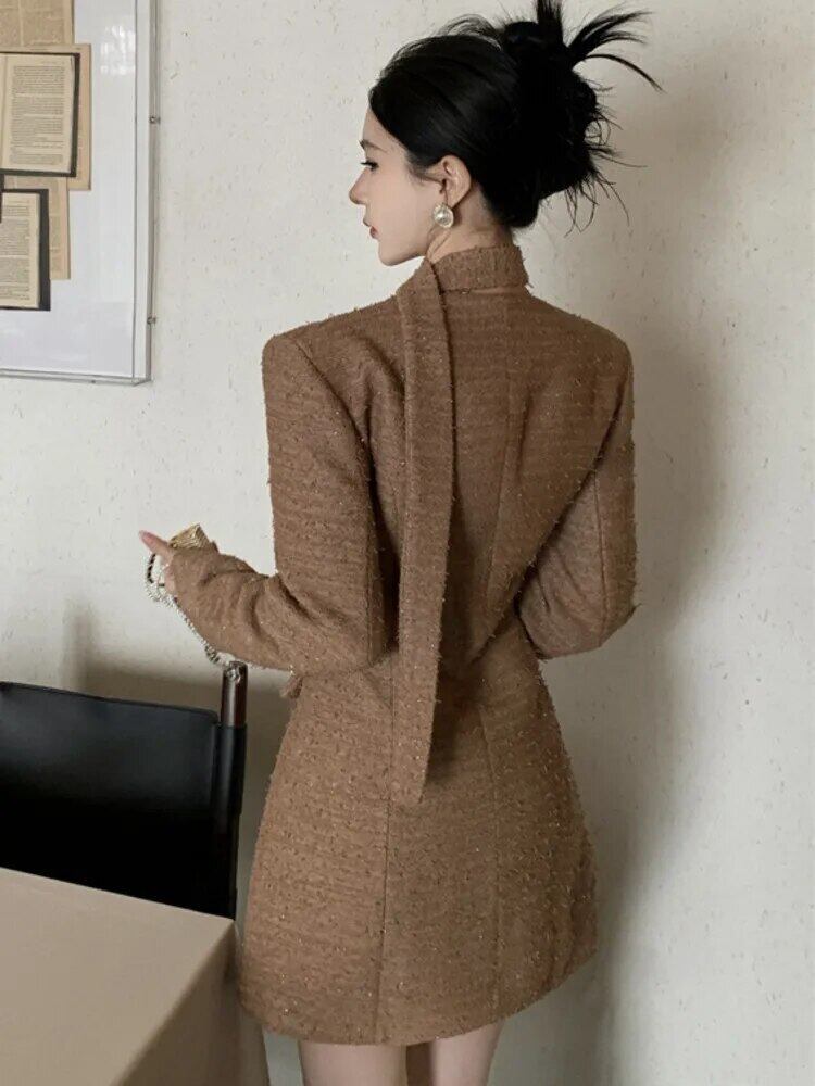 ストリート高級小さ香りツイードドレス冬フレンチショートドレスパーティー Vestidos ローブ ウィンター 冬物