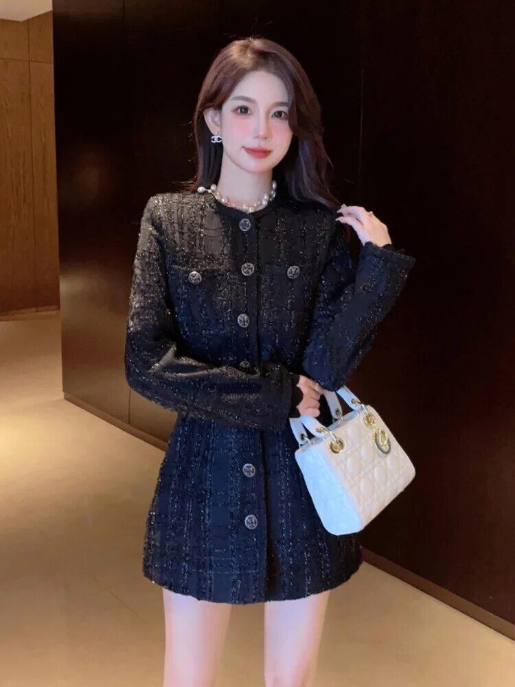 フレンチスモールフレグランスツイードドレス秋冬高級スリムミニパーティードレス オータム 秋物 ウィンター 冬物
