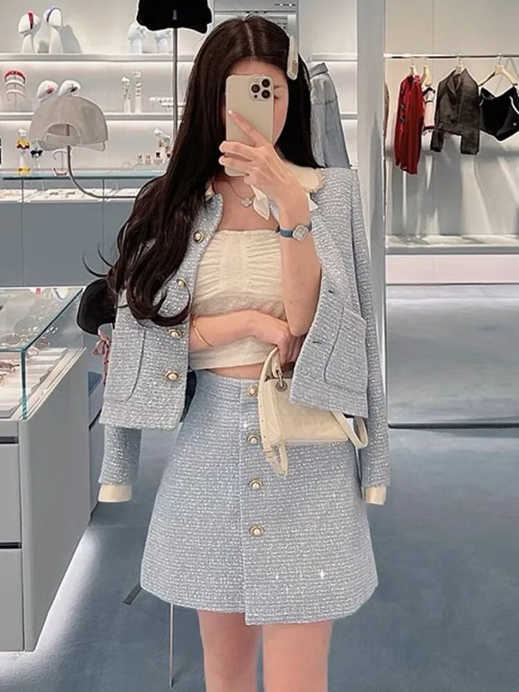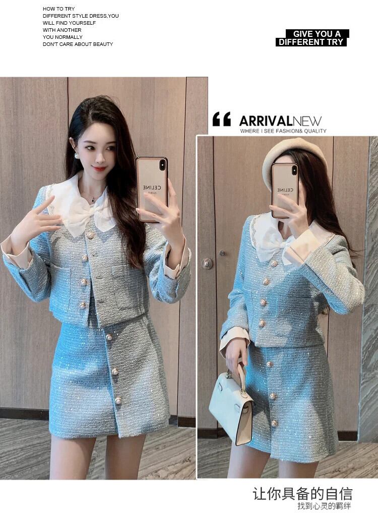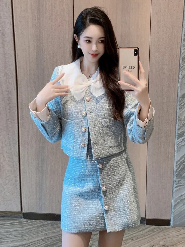 高級ツイード 2 点セットスイートリボンジャケットコート + スカート 2 点セット衣装 大人ガーリー スウィート キュート カジュアル