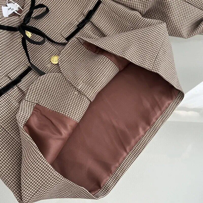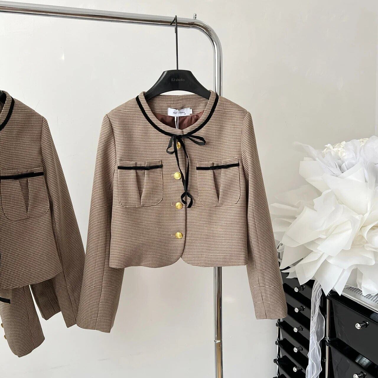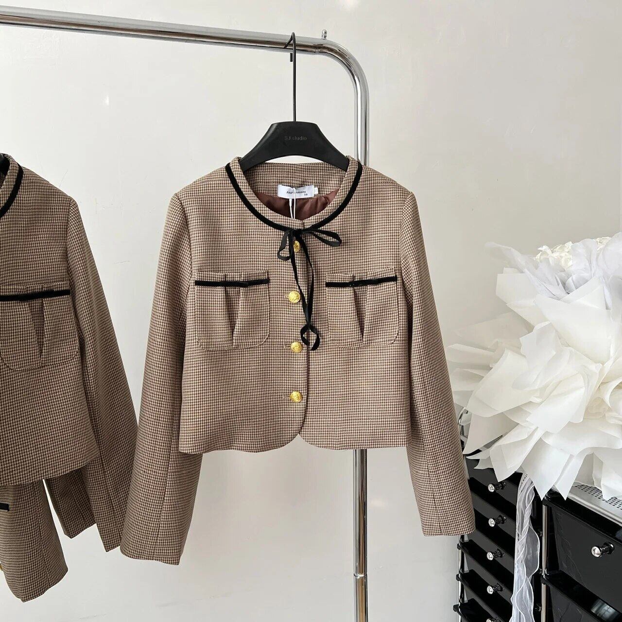 千鳥格子フレンチスモールフレグランスジャケット秋冬OLコートショートアウター オータム 秋物 ウィンター 冬物