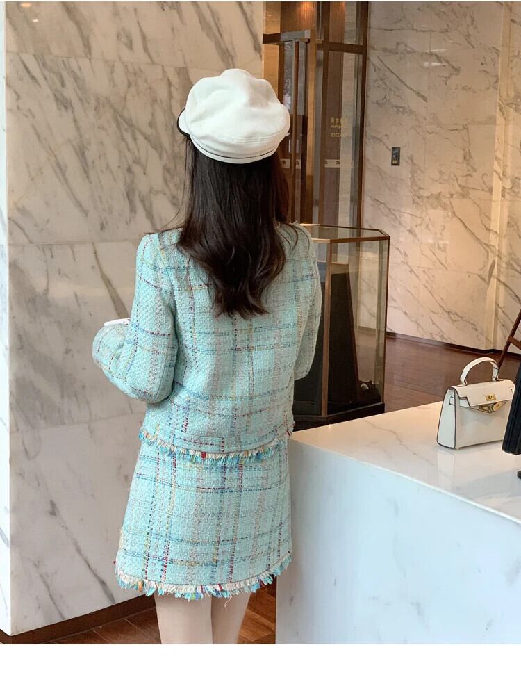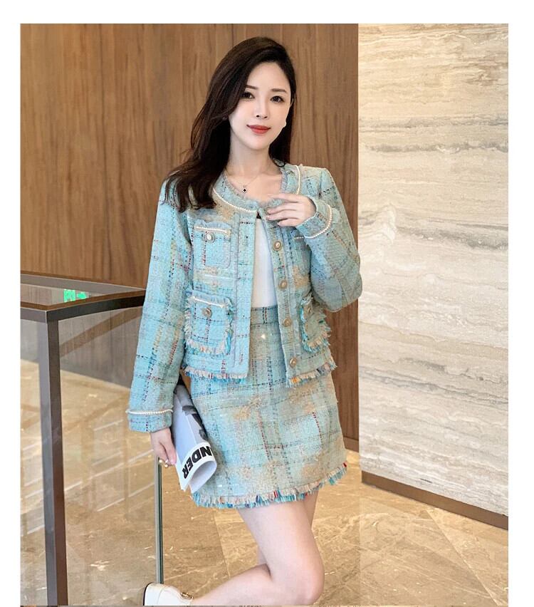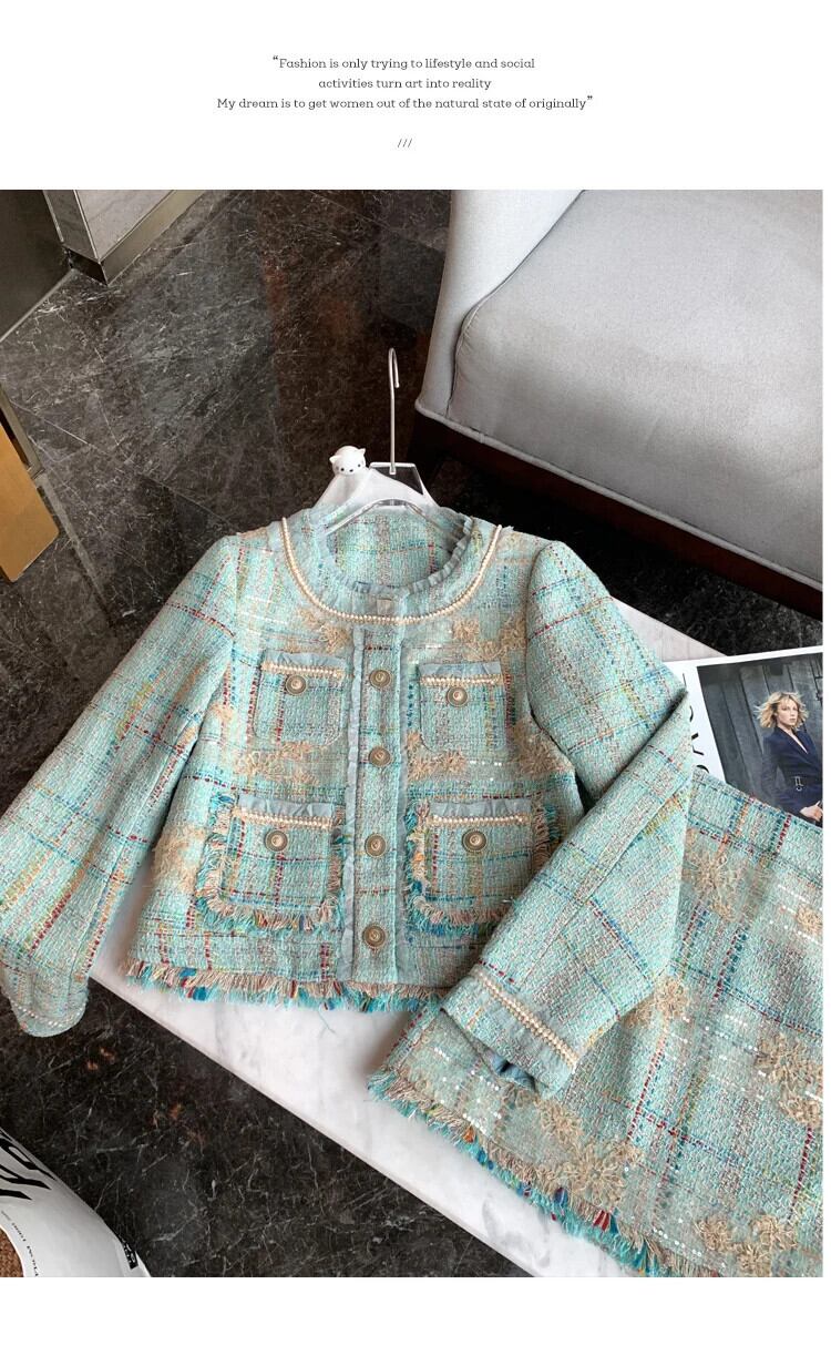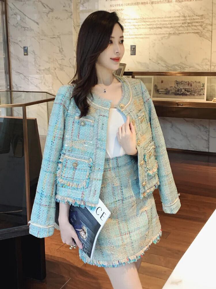 フランス小さ香りツイード 2 点セット甘いジャケットコート + スカート 2 点セット衣装 大人ガーリー スウィート キュート カジュアル
