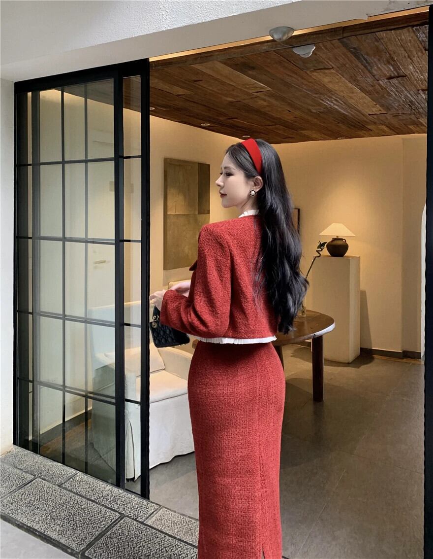 高級ツイード 2 点セット衣装ショートジャケットコート + ロングスカートセット秋冬ウール 2 ピーススーツ オータム 秋物 ウィンター 冬物
