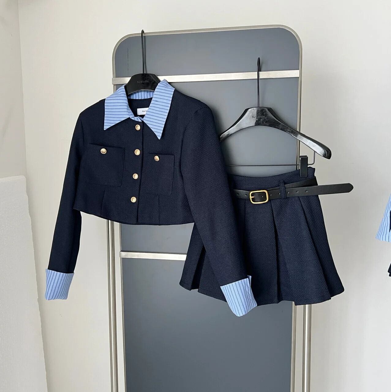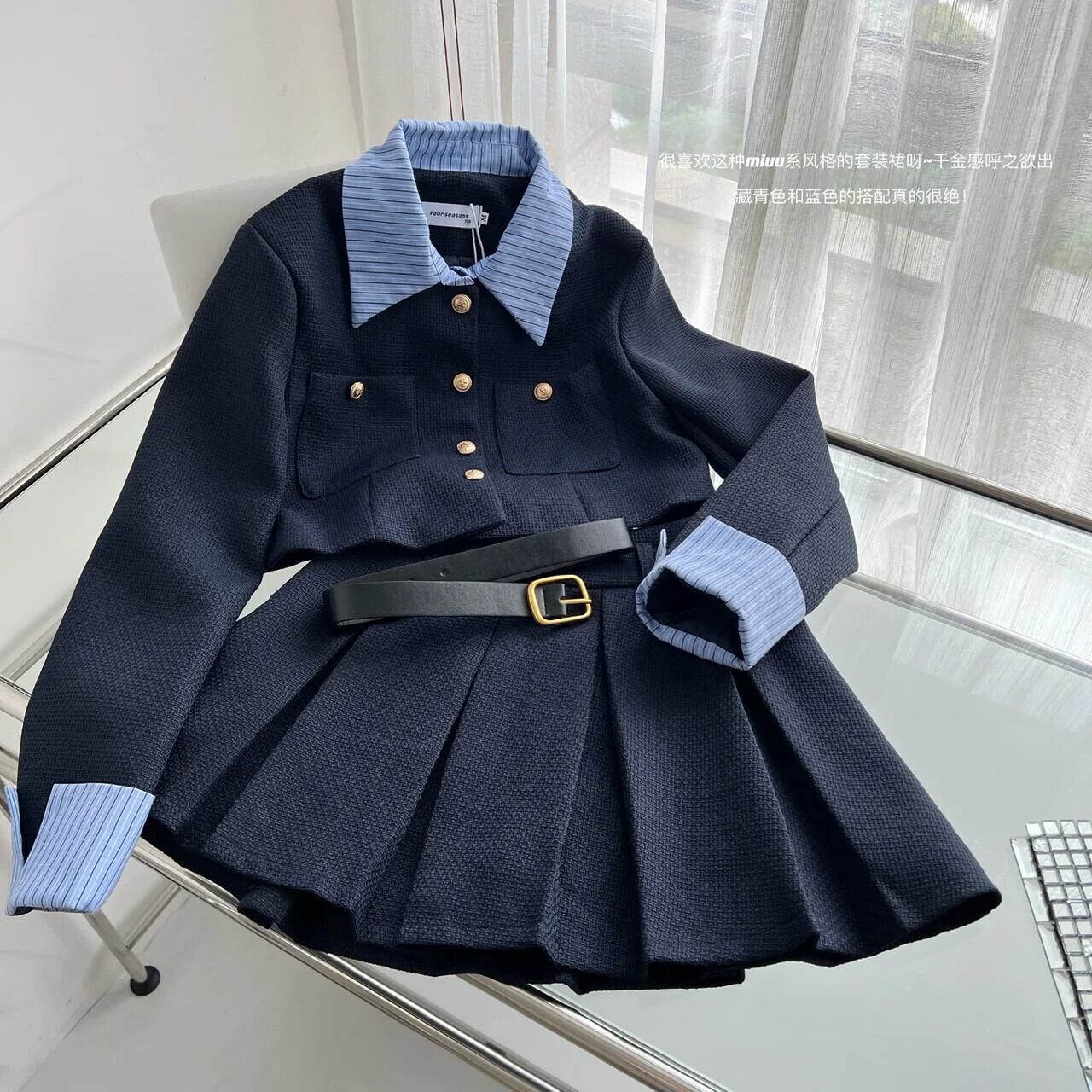 OL 仕事 2 点セット レディース ブレザー コート + プリーツ スカート スーツ 2 点セット レディース 衣装