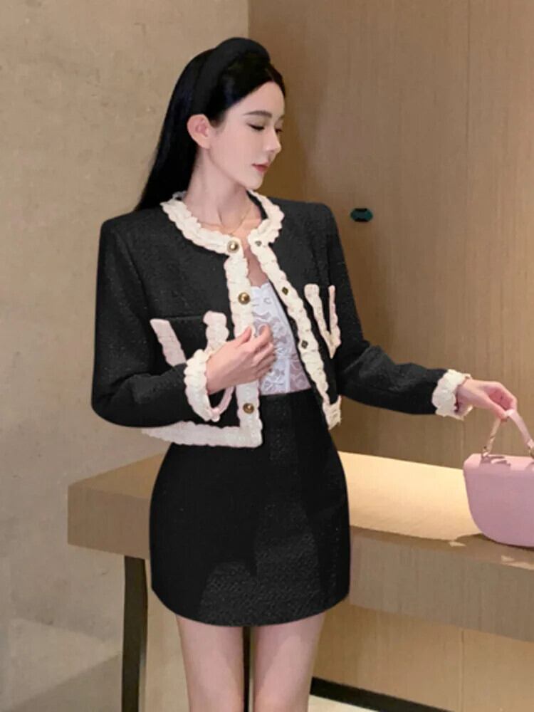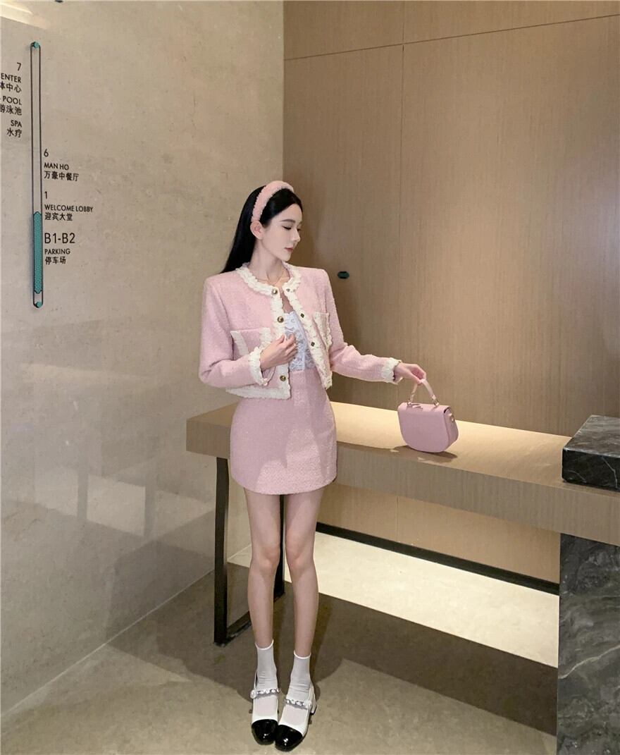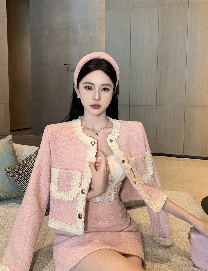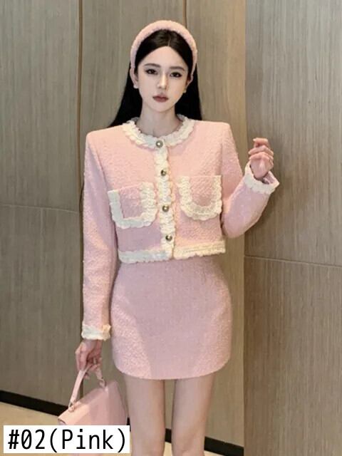 秋冬衣装ツーピースセット甘いショートツイードジャケットコート+スカート2点セット衣装 大人ガーリー スウィート キュート カジュアル ウィンター 冬物