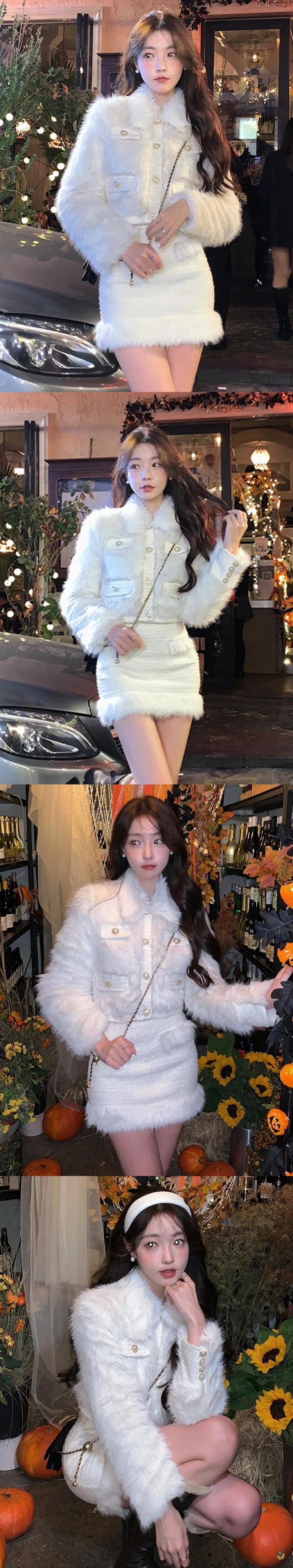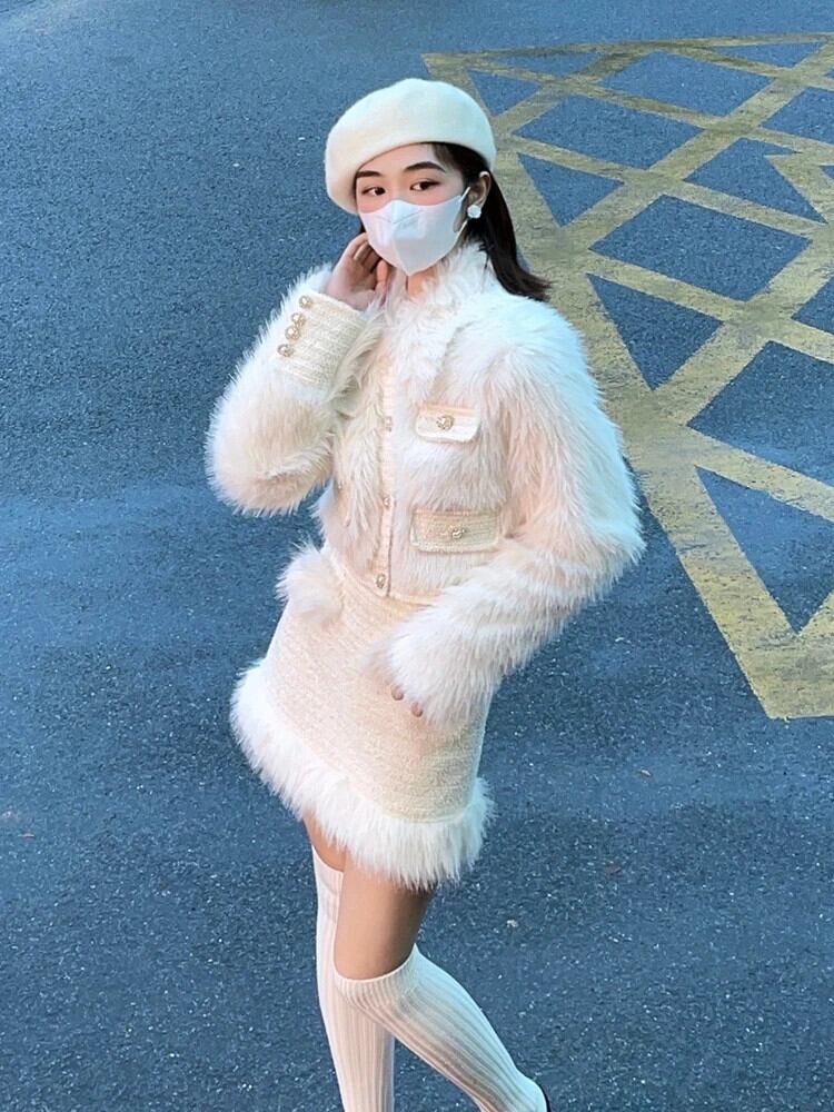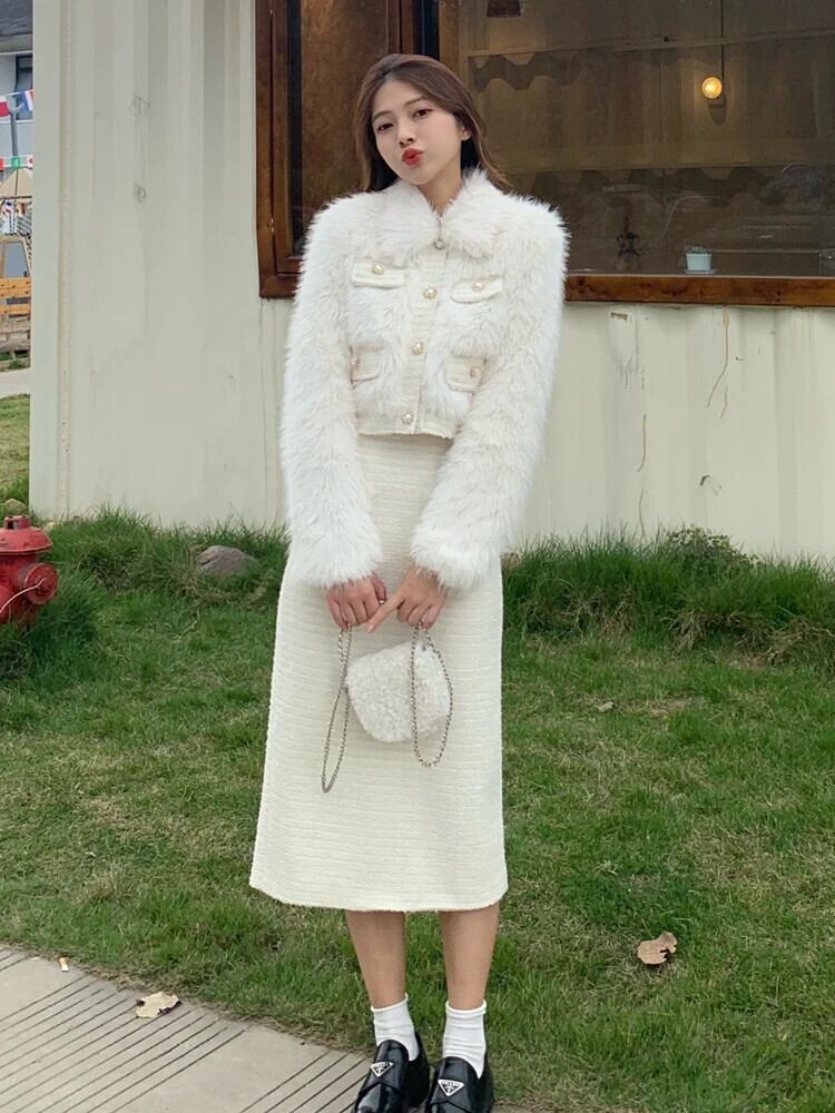 厚く暖かい冬 2 点セット衣装フェイクファージャケットコート + スカート 2 点セット Conjuntos Femininos ウィンター 冬物