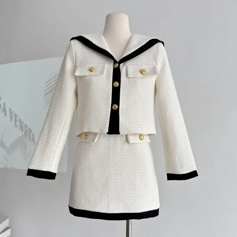 小さフレグランツイード 2 点セットショートジャケットコート + スカートスーツガールスイート 2 点セット衣装 大人ガーリー スウィート キュート カジュアル
