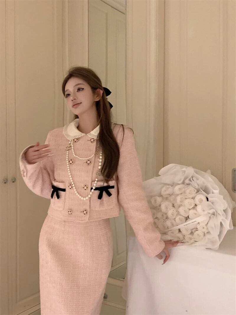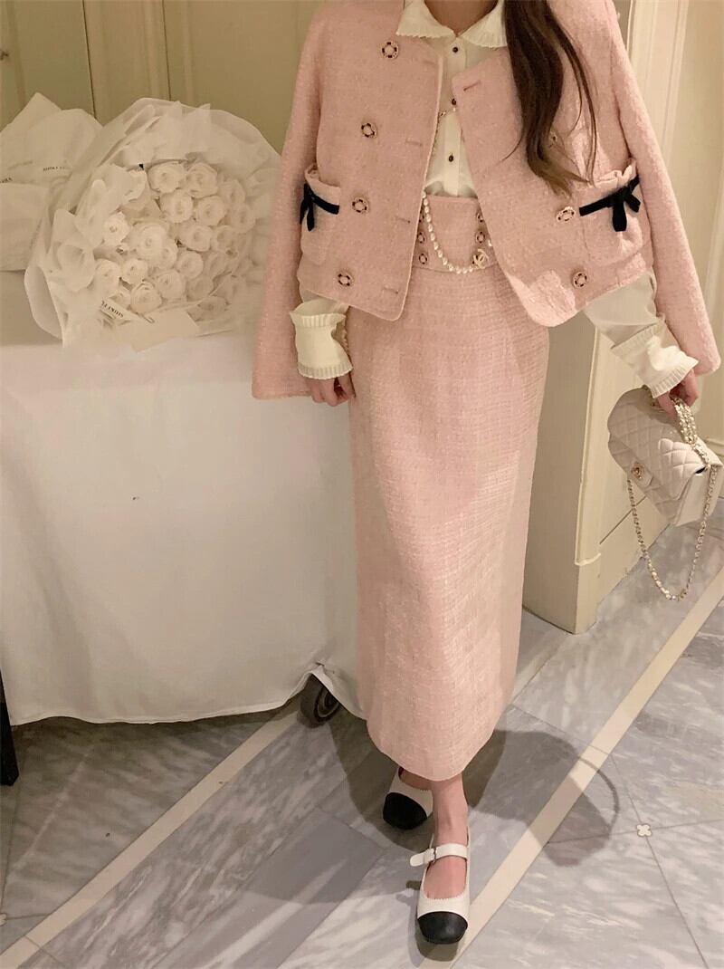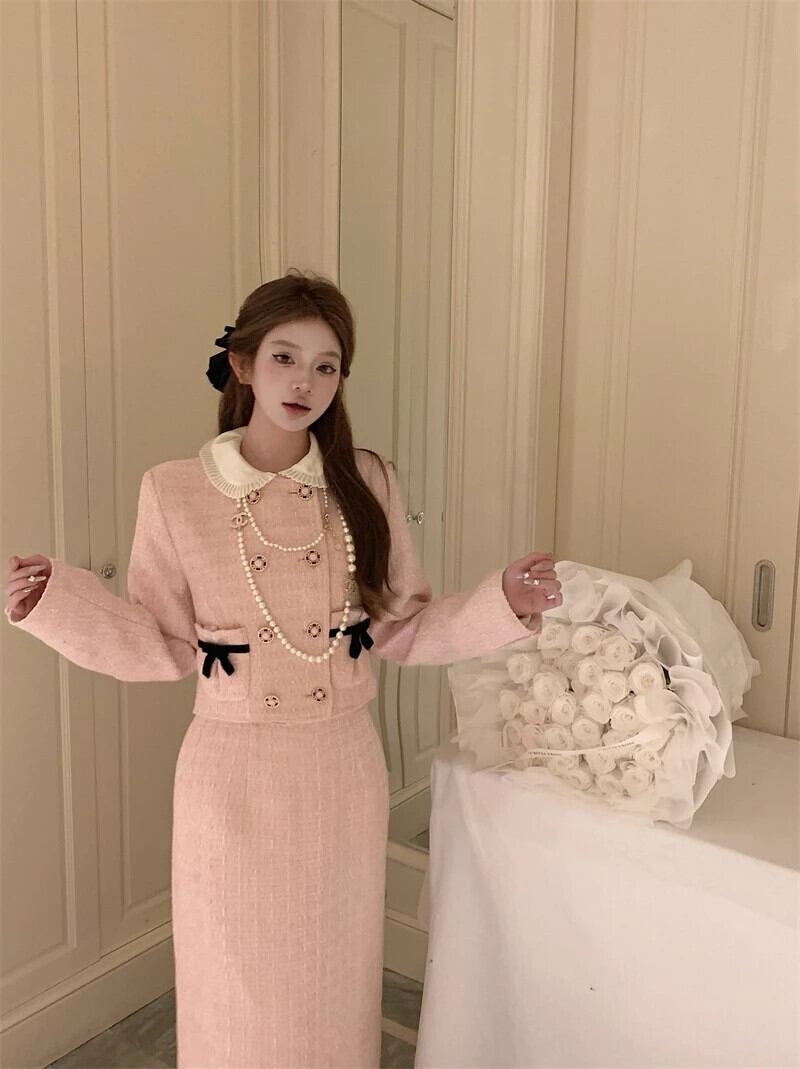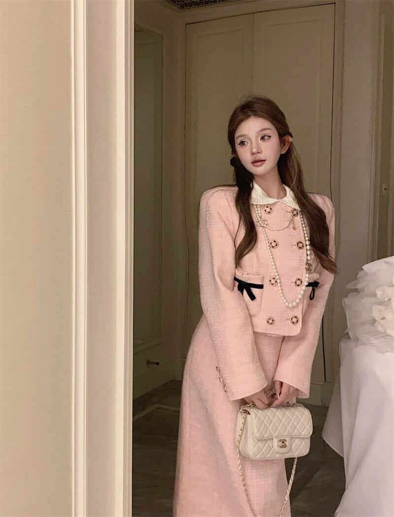 ストリート高級ツイード 2 点セット衣装冬ジャケットコート + ドレス 2 点セット Conjunto Femininos ウィンター 冬物