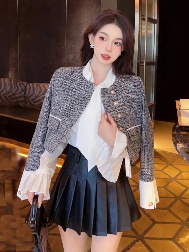 秋小さ香りショートコート可能スリムジャケットフレンチアウター Chaquetas オータム 秋物