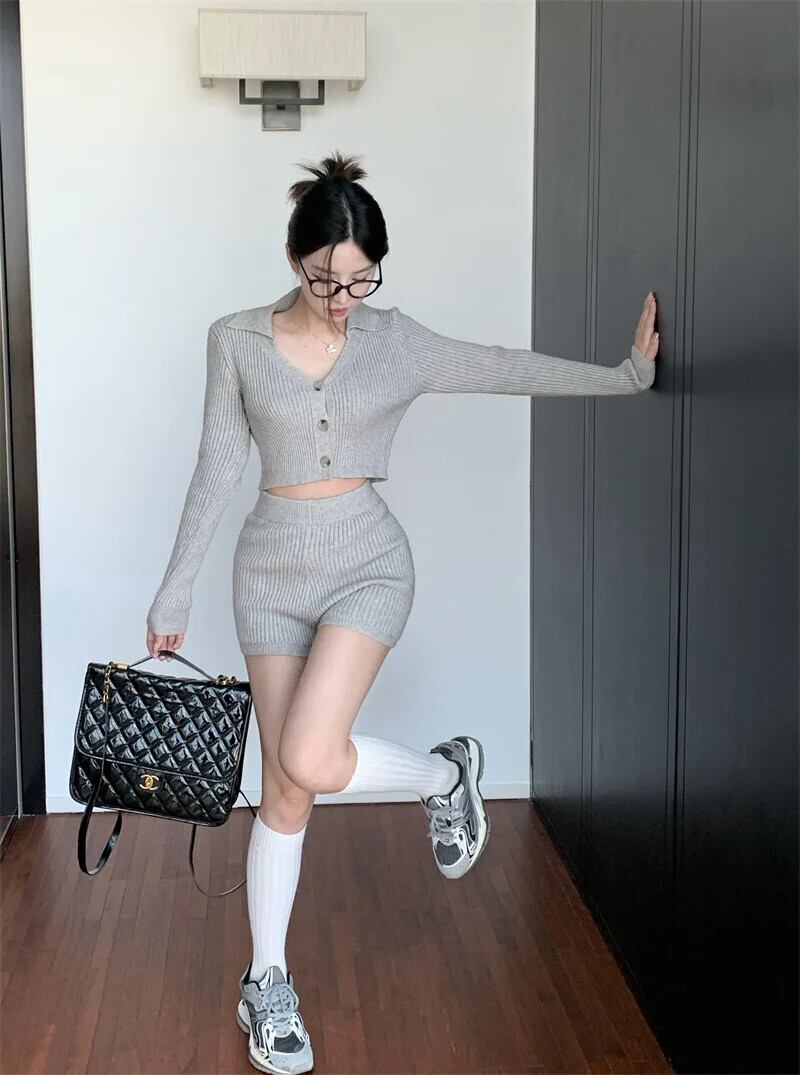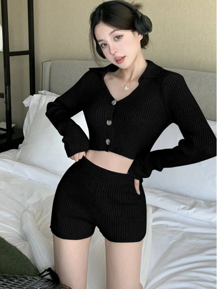 秋カーディガントップスパンツセットセータートラックスーツ 2 個セット衣装ニット オータム 秋物