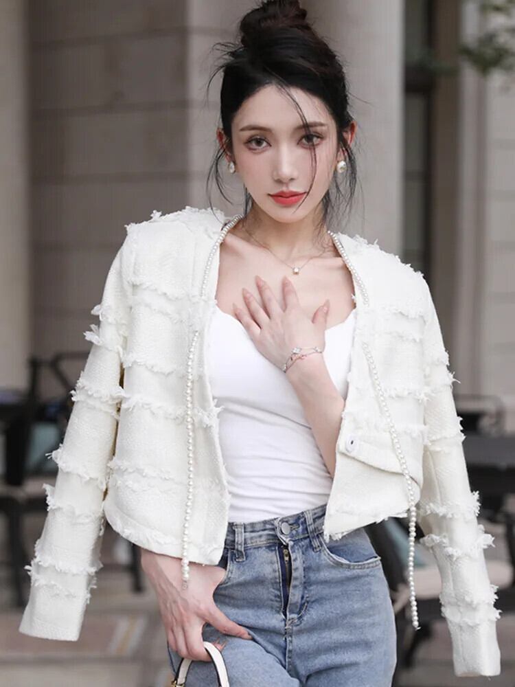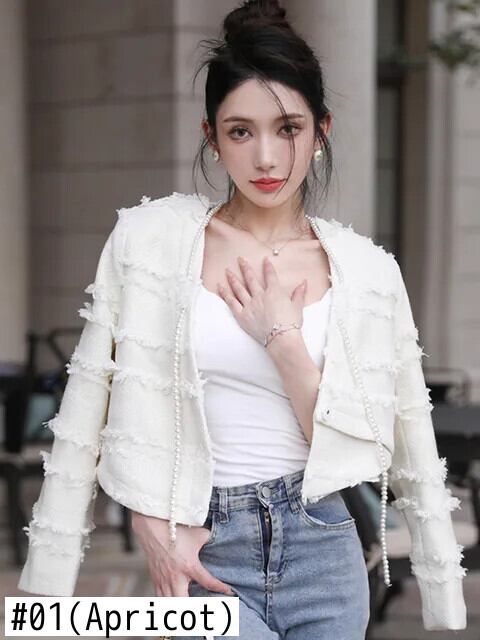 ストリートスモールフレグランスツイードジャケットコートコート秋フレンチ高級ビーズアウター オータム 秋物