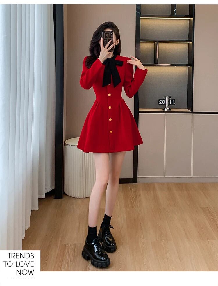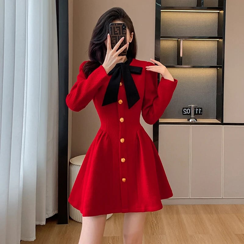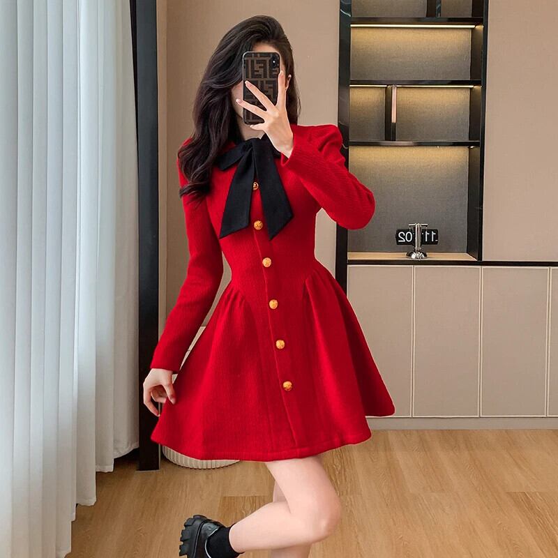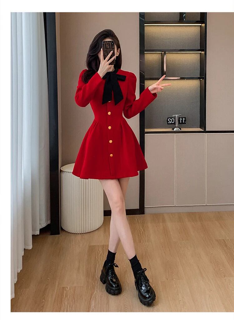 小さ香り年クリスマスミニドレス秋冬甘いパーティードレスローブ 大人ガーリー スウィート キュート カジュアル オータム 秋物 ウィンター 冬物