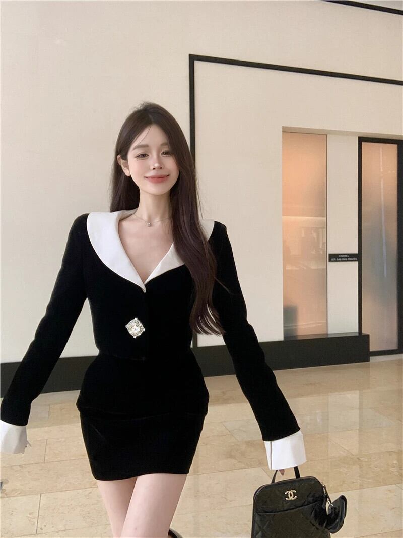 秋冬フレンチスモールフレグランスツーピースセットダイヤモンドボタンジャケットコート+スカートスーツ甘い2ピース衣装 大人ガーリー スウィート キュート カジュアル ウィンター 冬物