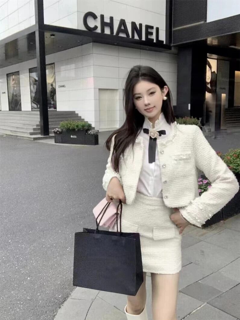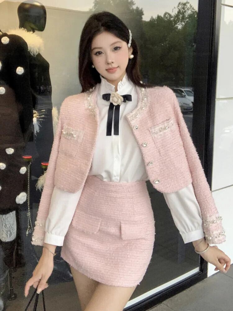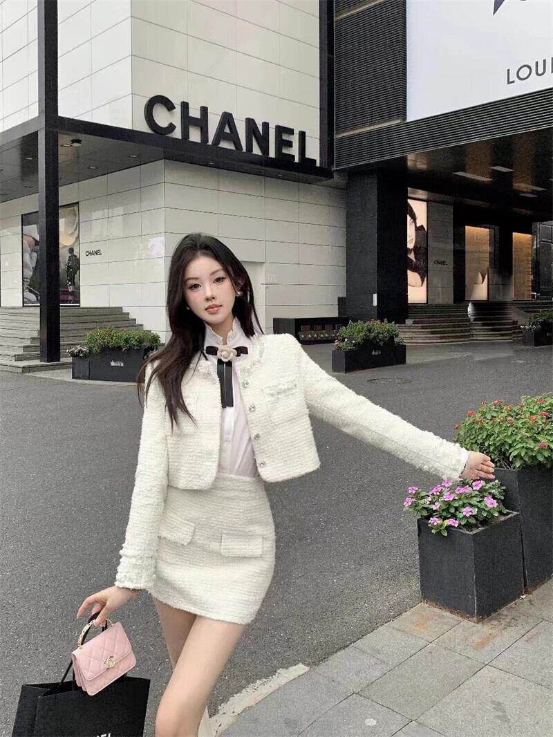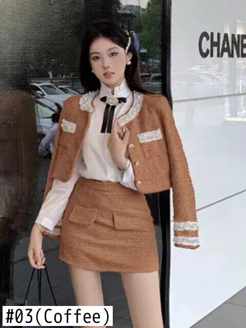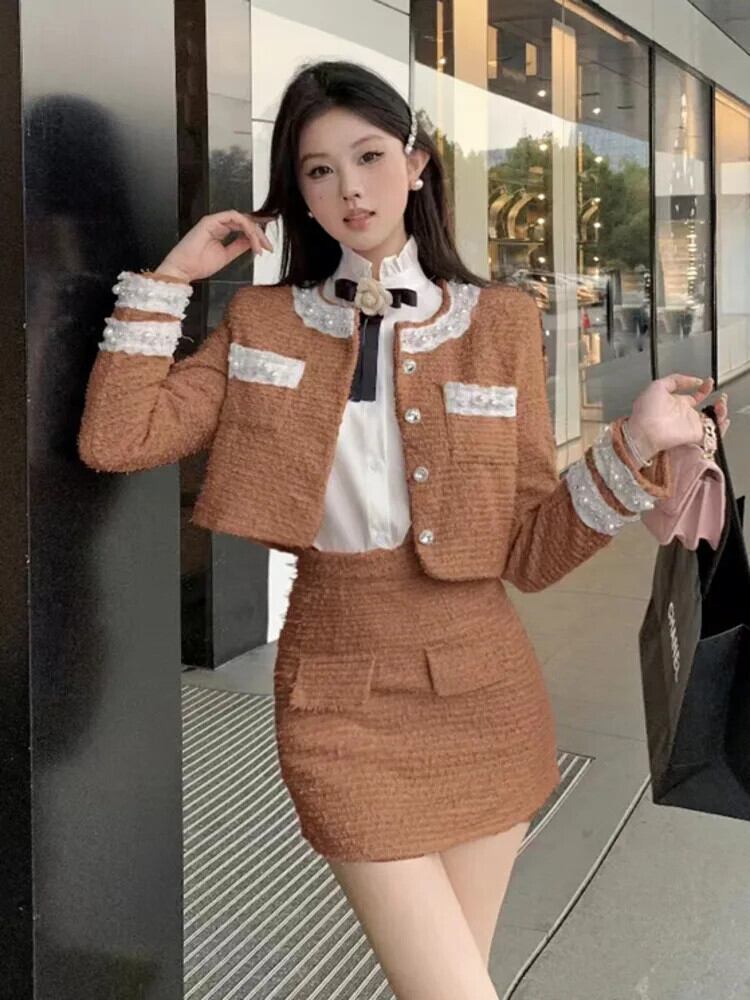 フランス小さ香りツーピースセットショートジャケットコート + スカートスーツ甘い 2 ピース衣装 大人ガーリー スウィート キュート カジュアル