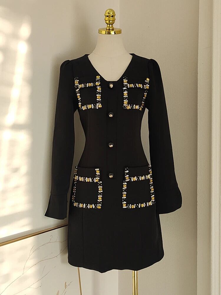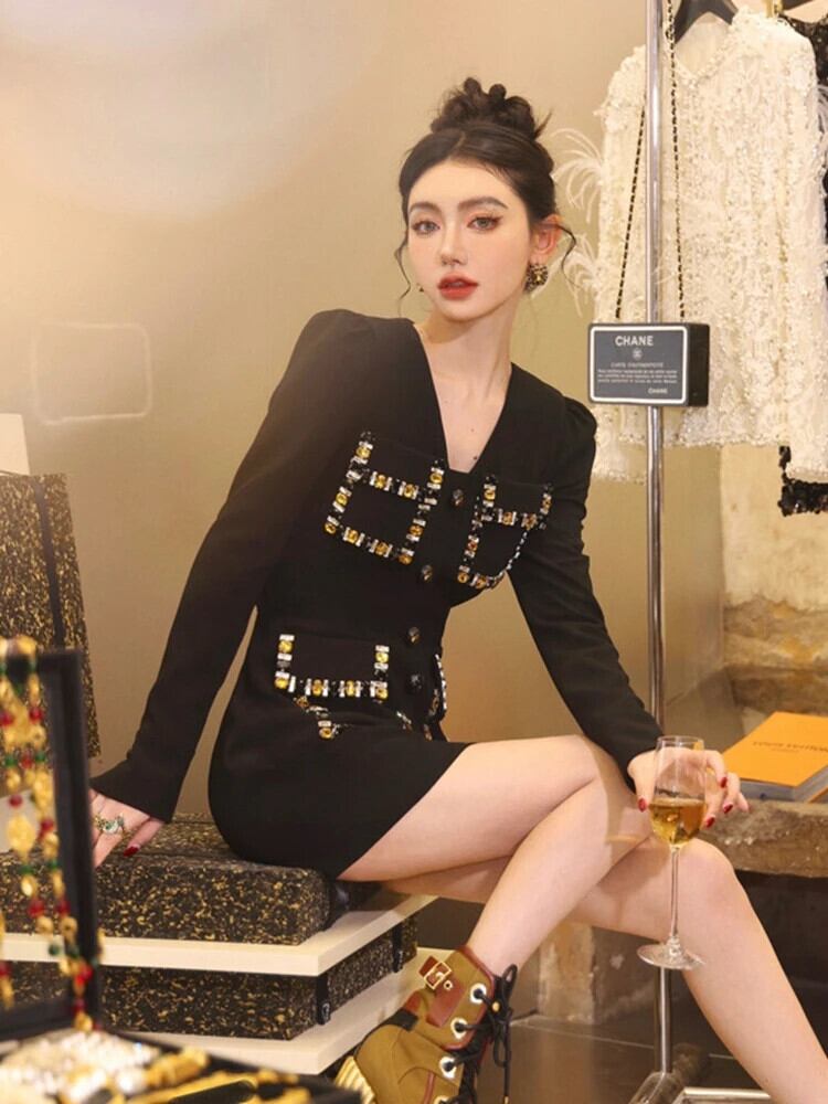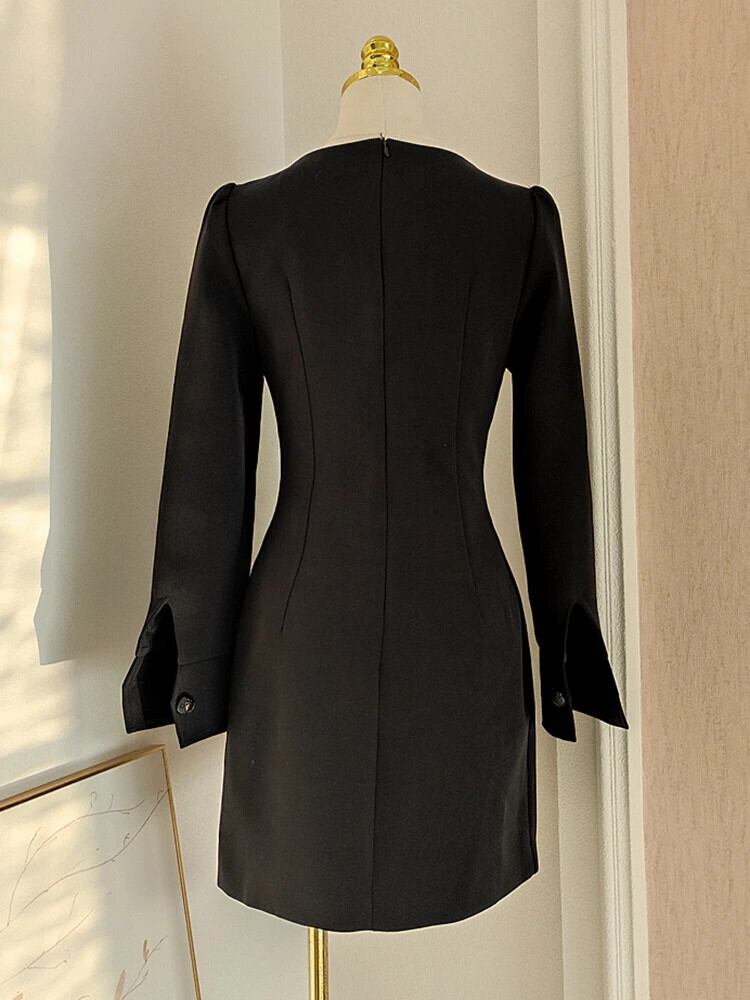 高級滑走路黒ドレス秋 OL Vestidos パーティードレス ブラック オータム 秋物