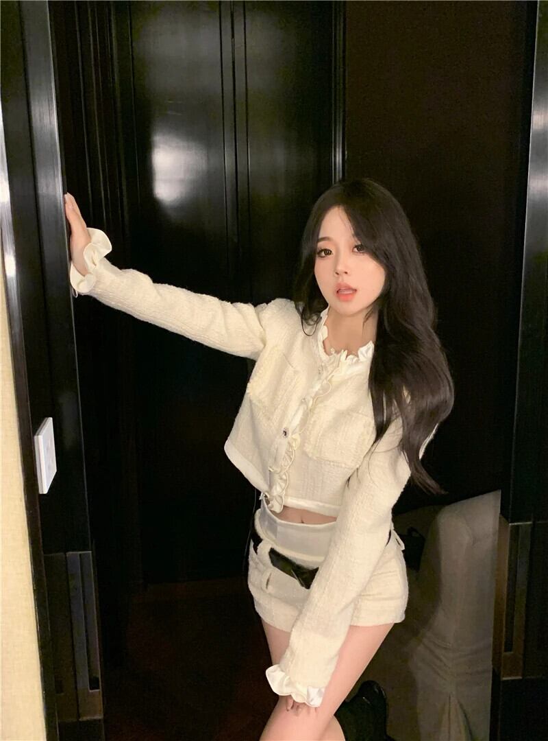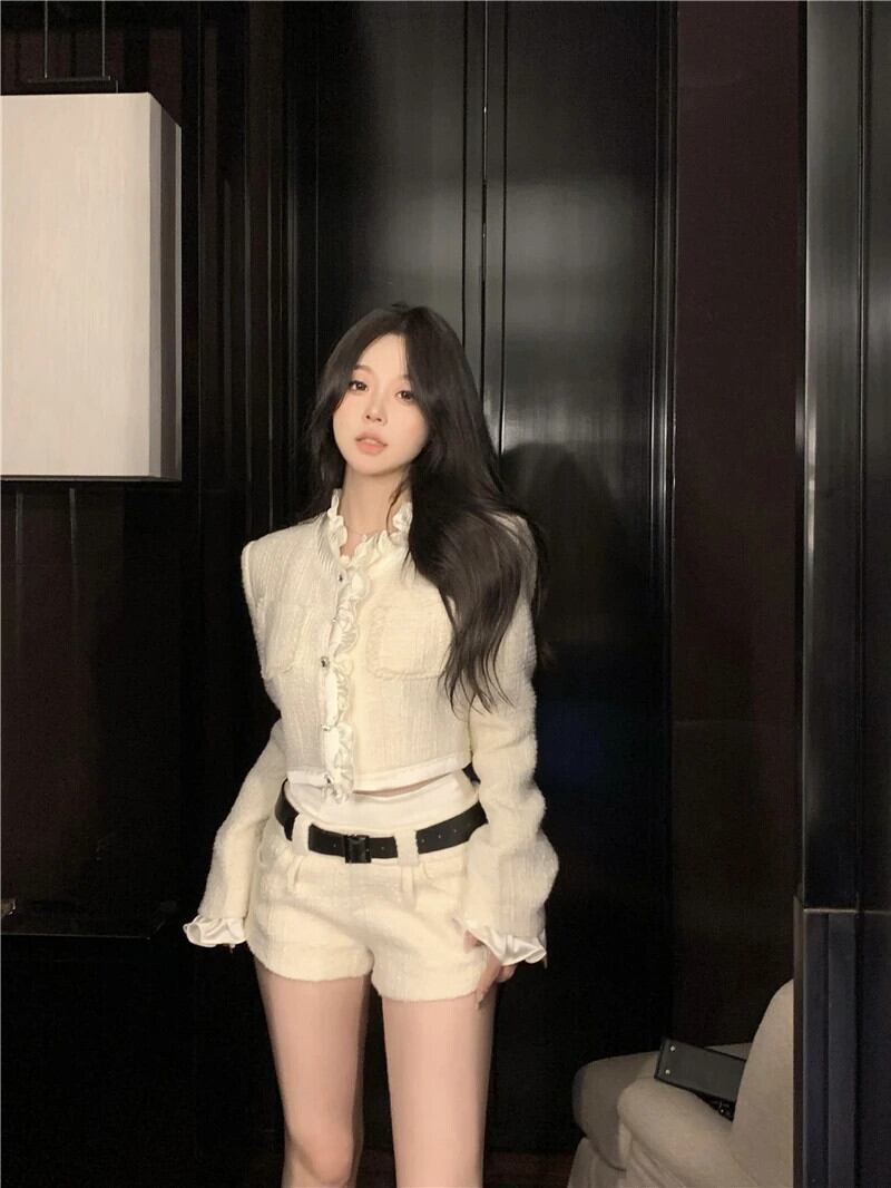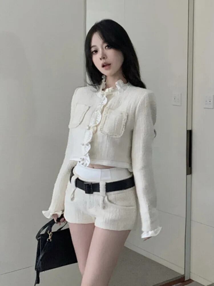 ストリートツイードツーピースパンツセットショートジャケットコート+ショートセットConjuntos Femininos esアンサンブル