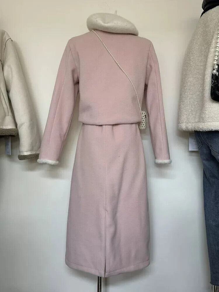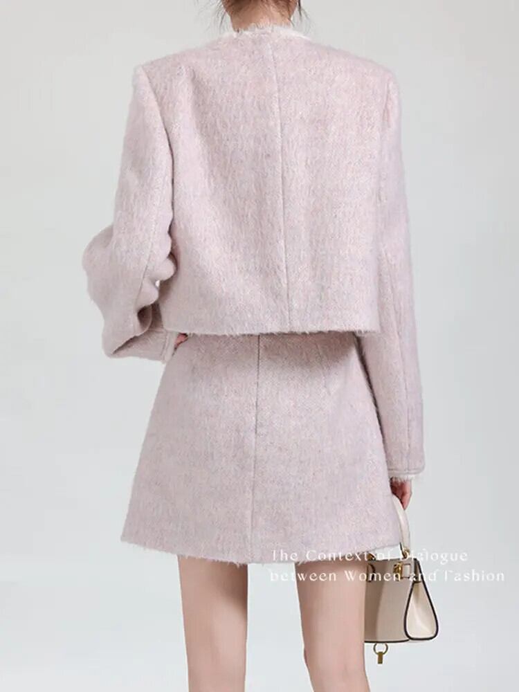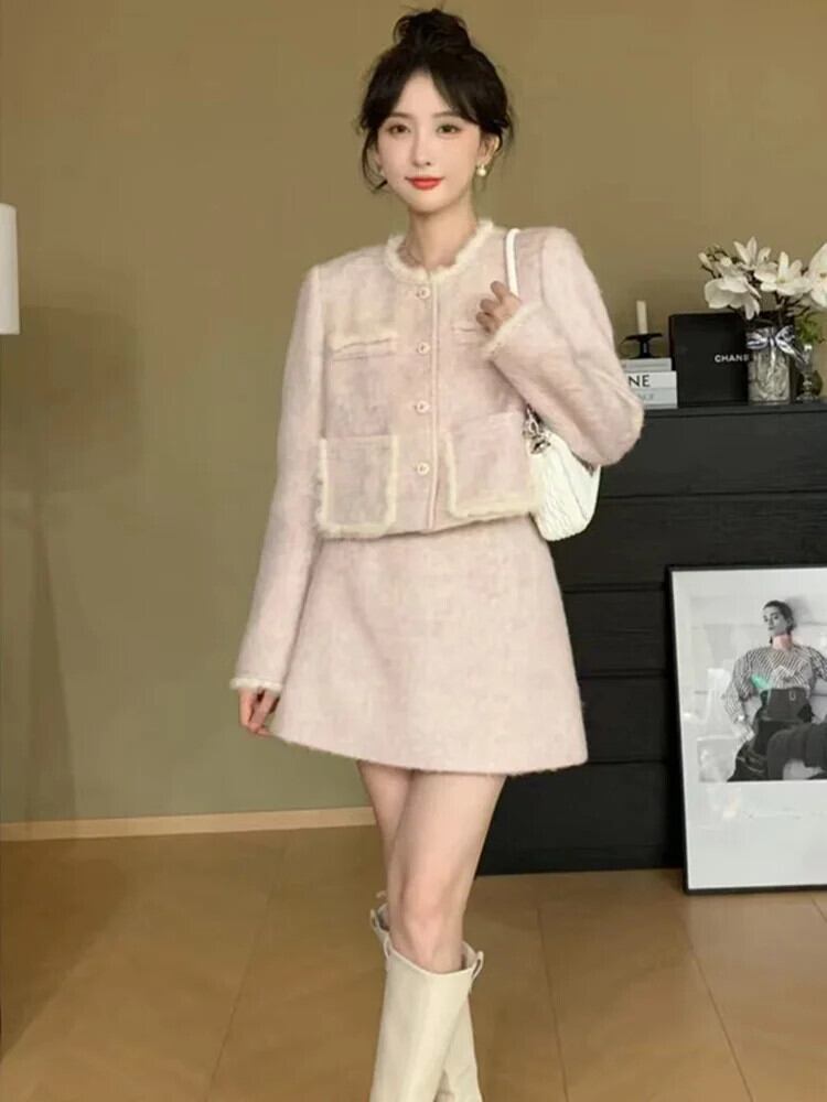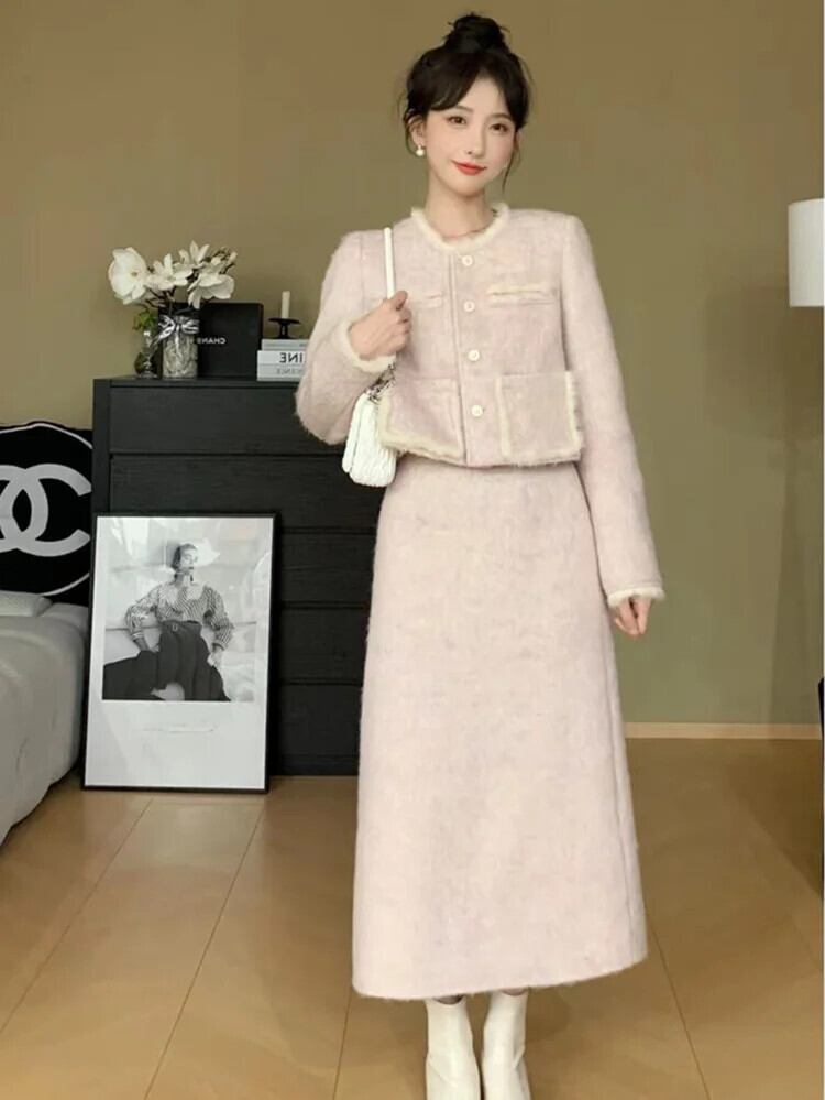 秋冬スイートウール 2 点セットジャケットコート + スカートスーツフレンチ小さ香り 2 点セット 大人ガーリー スウィート キュート カジュアル オータム 秋物 ウィンター 冬物