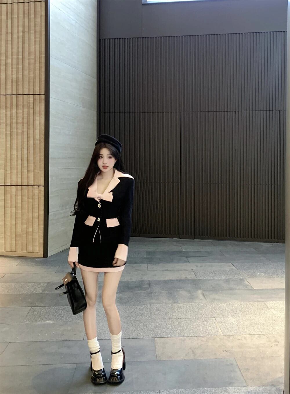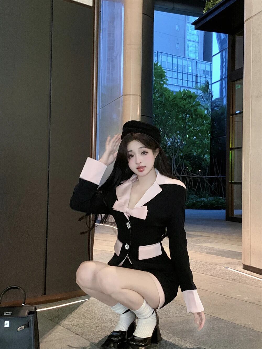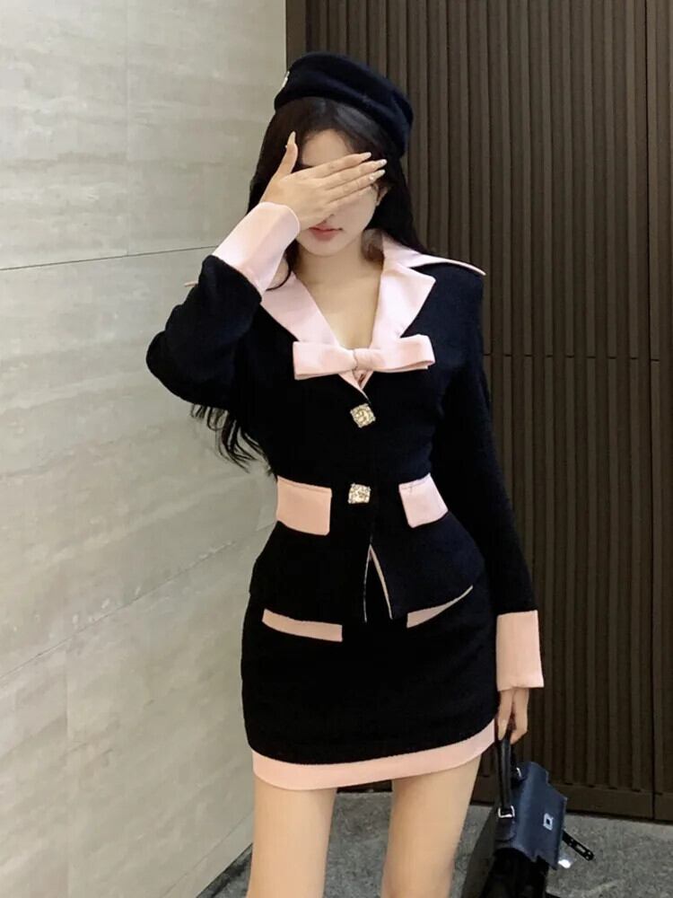 高級小さフレグランスツイード 2 点セットダイヤモンドボタン弓ジャケットコート + スカートスーツ甘い 2 ピース衣装 リボン 大人ガーリー スウィート キュート カジュアル