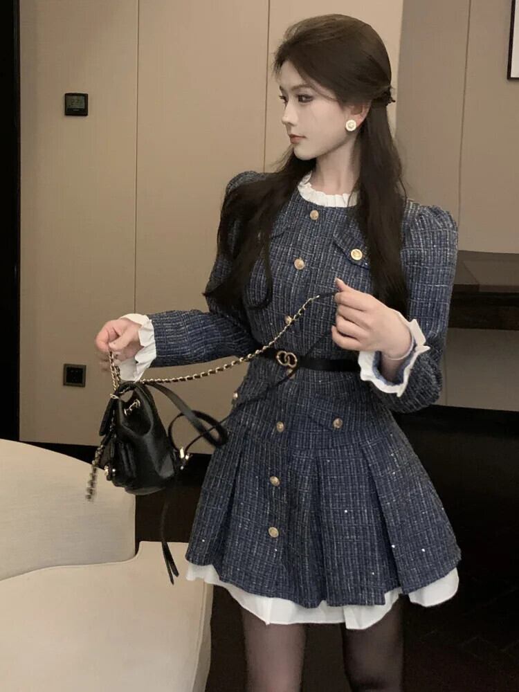 フレンチミニパーティードレス秋甘いプリーツドレス Vestido Feminino 大人ガーリー スウィート キュート カジュアル オータム 秋物