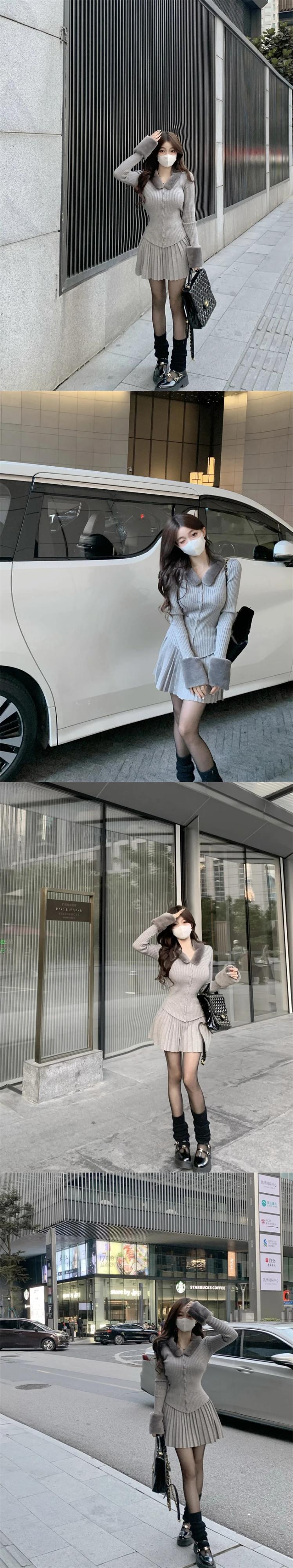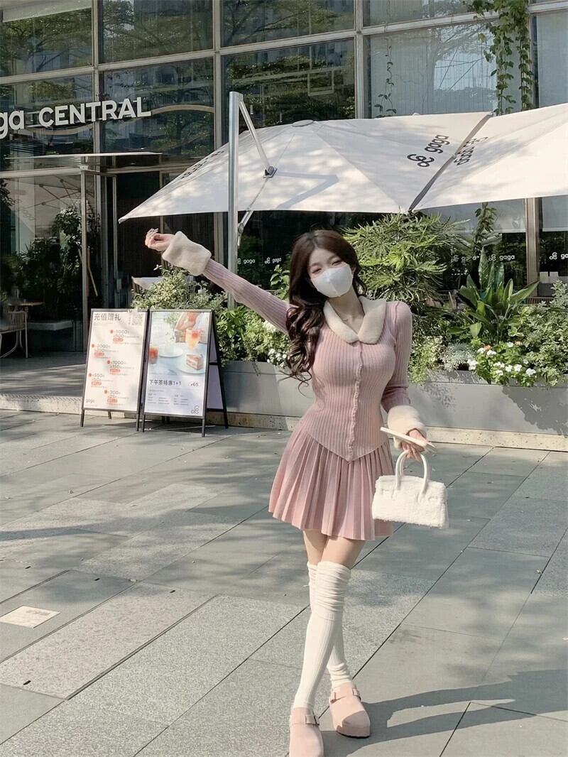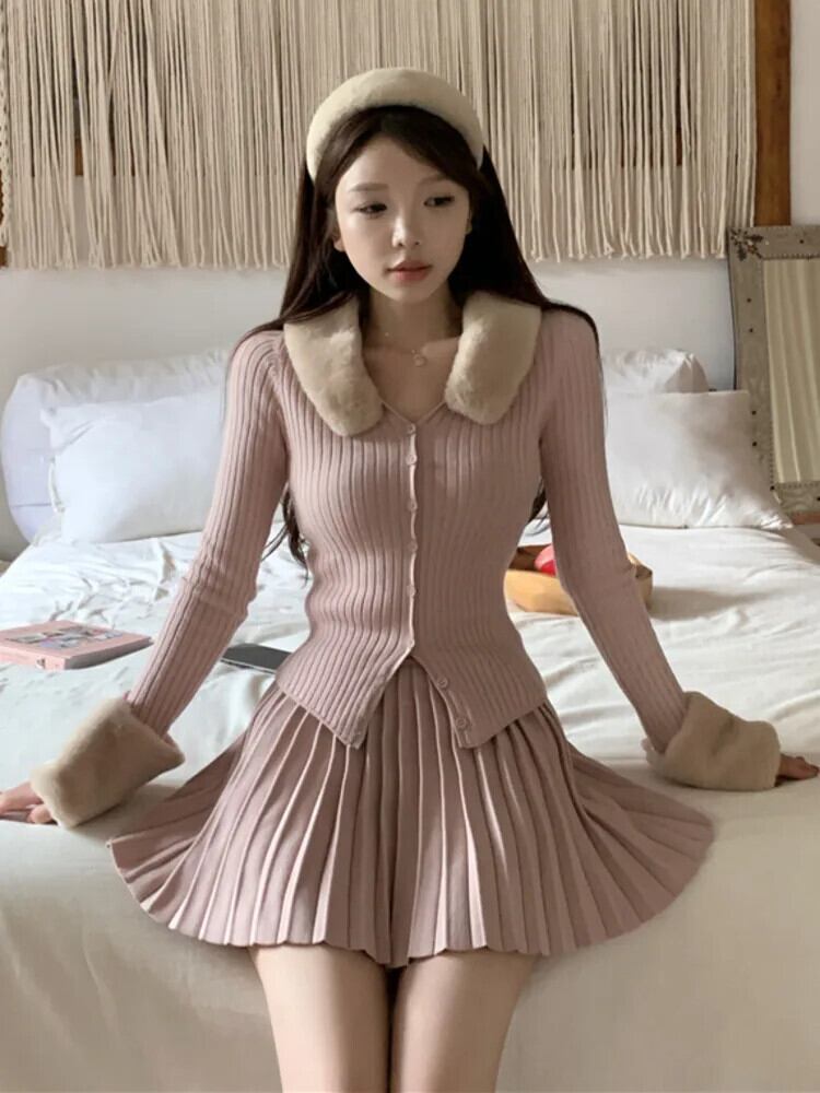 新着ニットツーピースセットカーディガンセータートップス & ショートスカート 2 点セット衣装