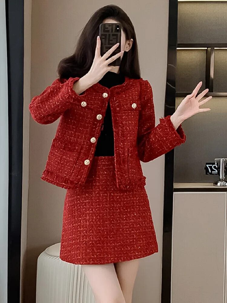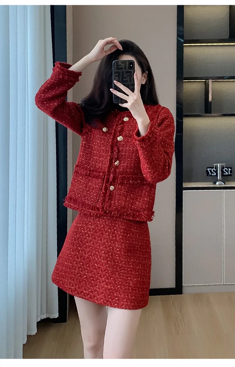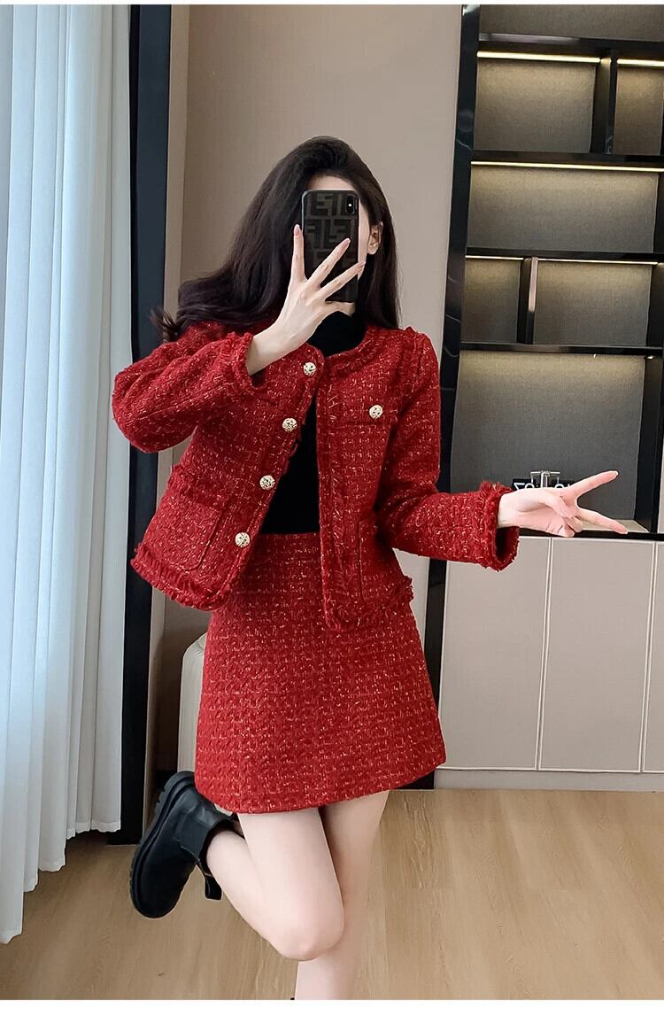 -end 秋冬お揃いセット 2 点セットジャケット コート + ショート スカート 2 点セット衣装 ウィンター 冬物
