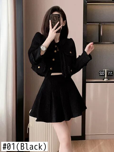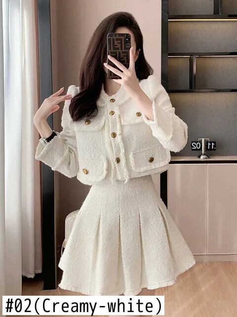 フランス小さフレグランスツイード 2 点セットジャケットコート + プリーツスカートスーツ甘い 2 点セット 大人ガーリー スウィート キュート カジュアル