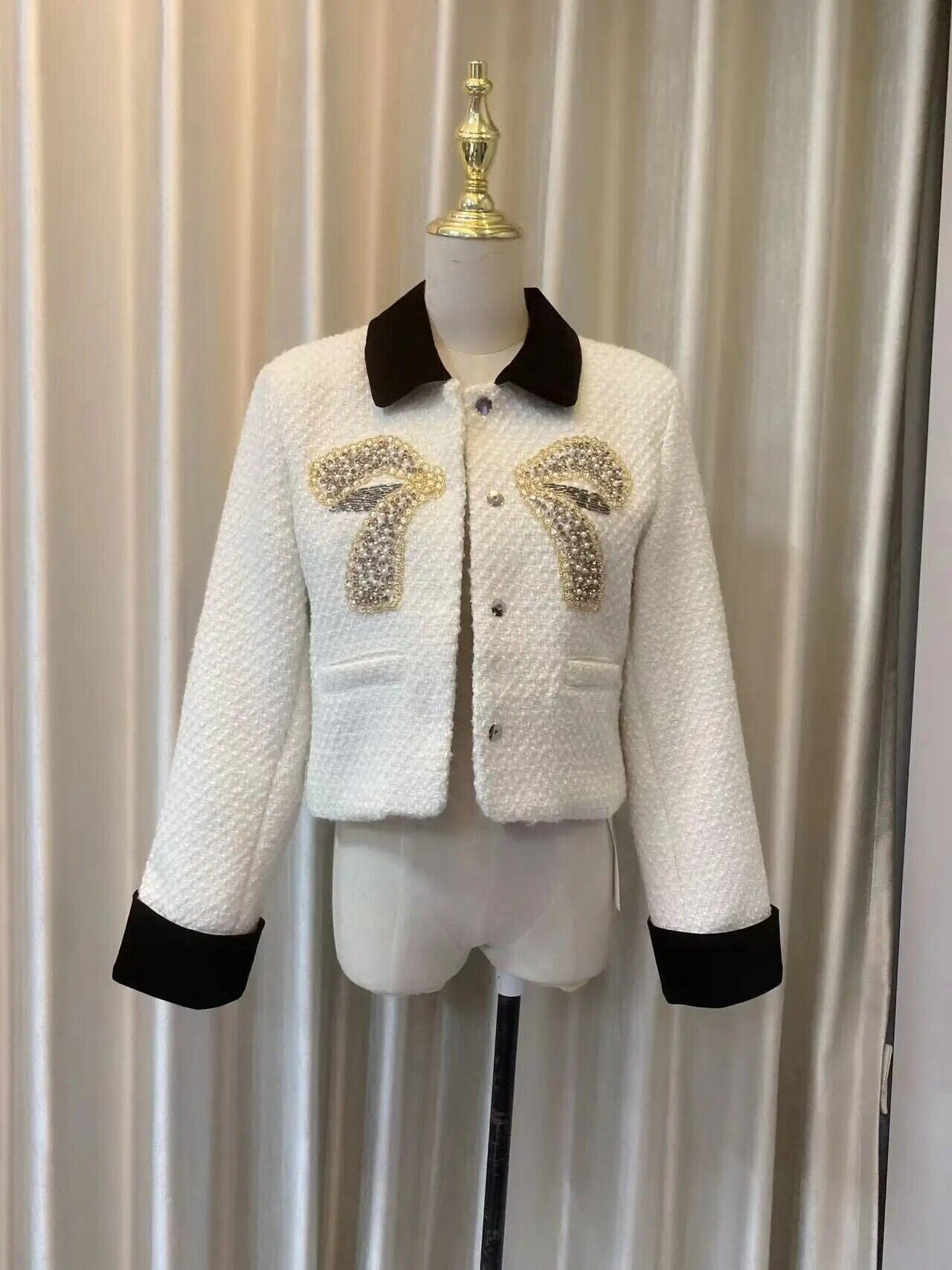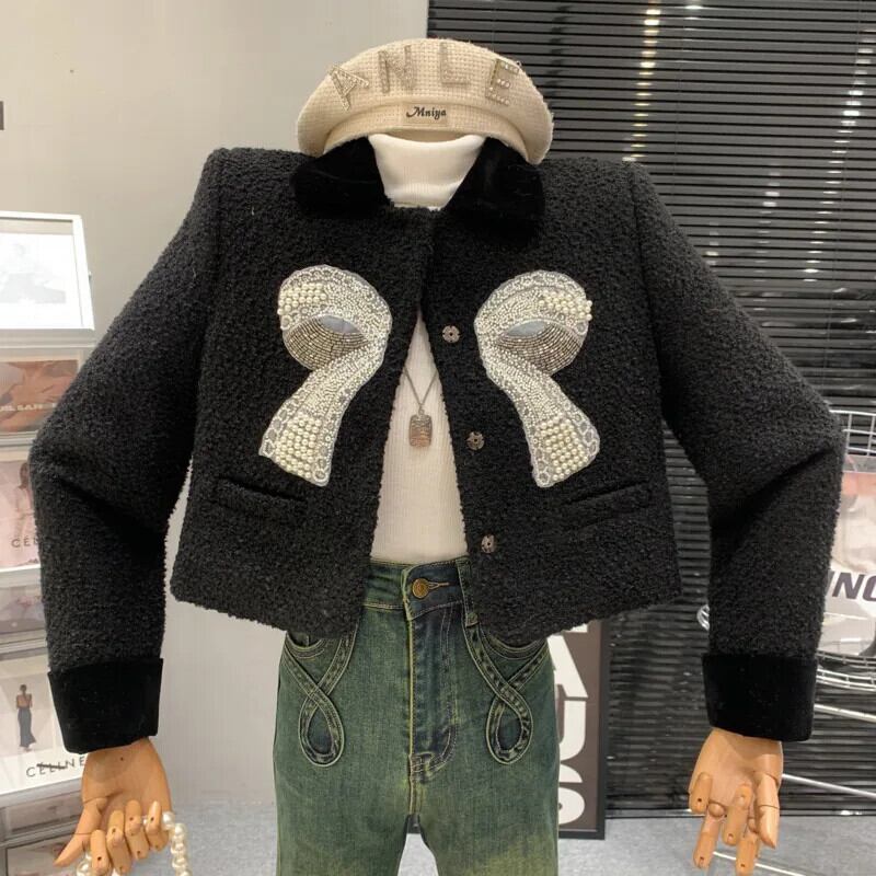 高級ダイヤモンドビーズウールジャケットフレンチスモールフレグランスツイードコート揚げストリート生き抜く