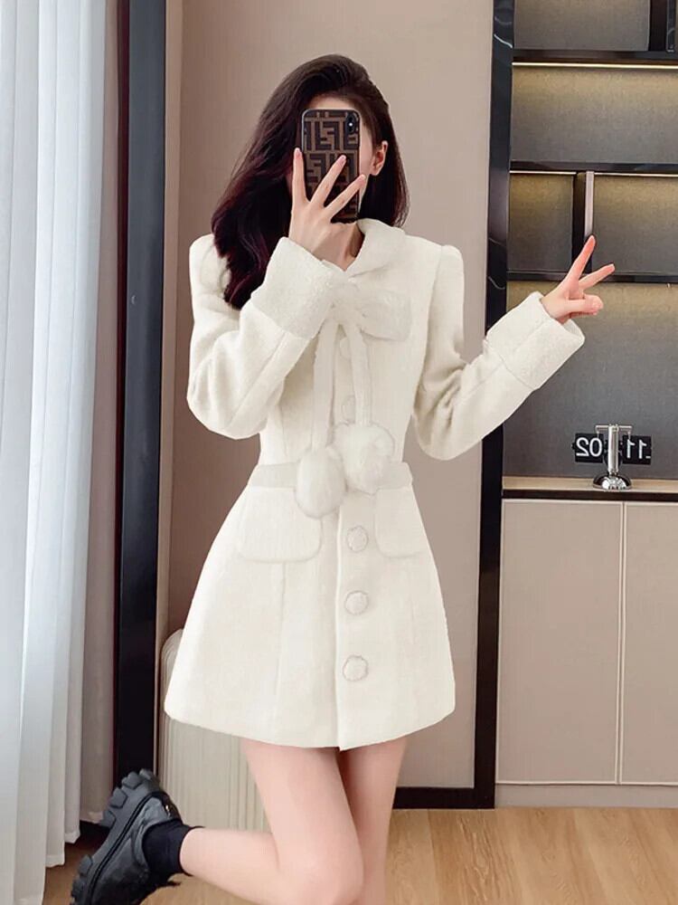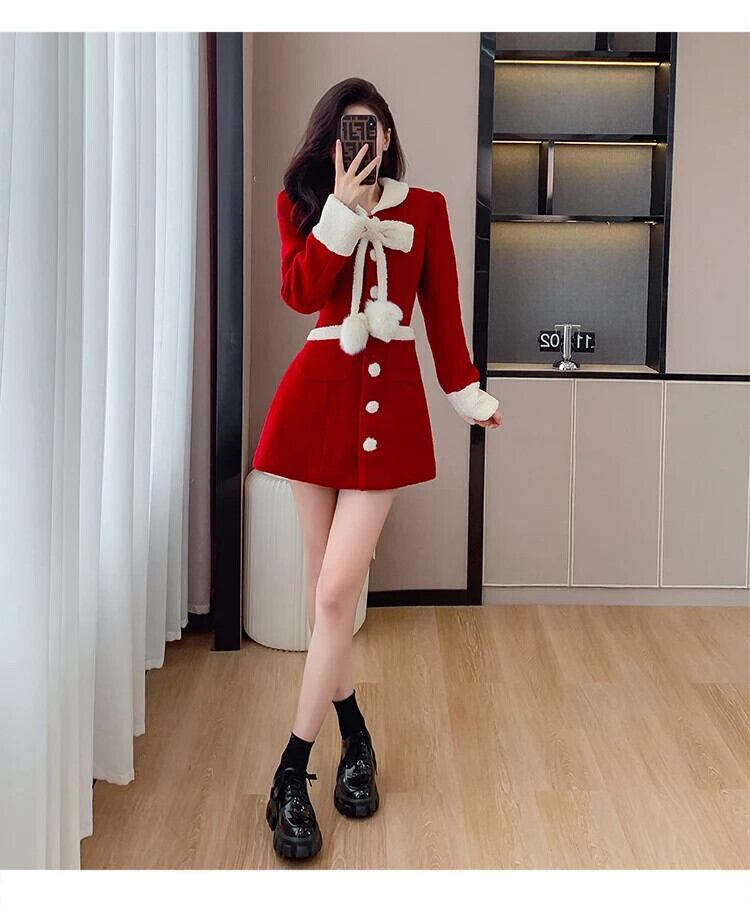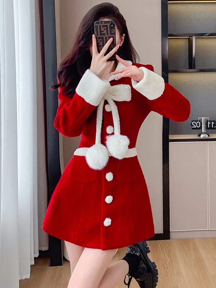 小さ香り年クリスマスウールドレス冬厚く暖かい甘いパーティードレス 大人ガーリー スウィート キュート カジュアル ウィンター 冬物