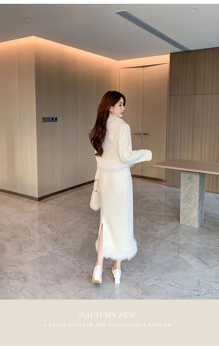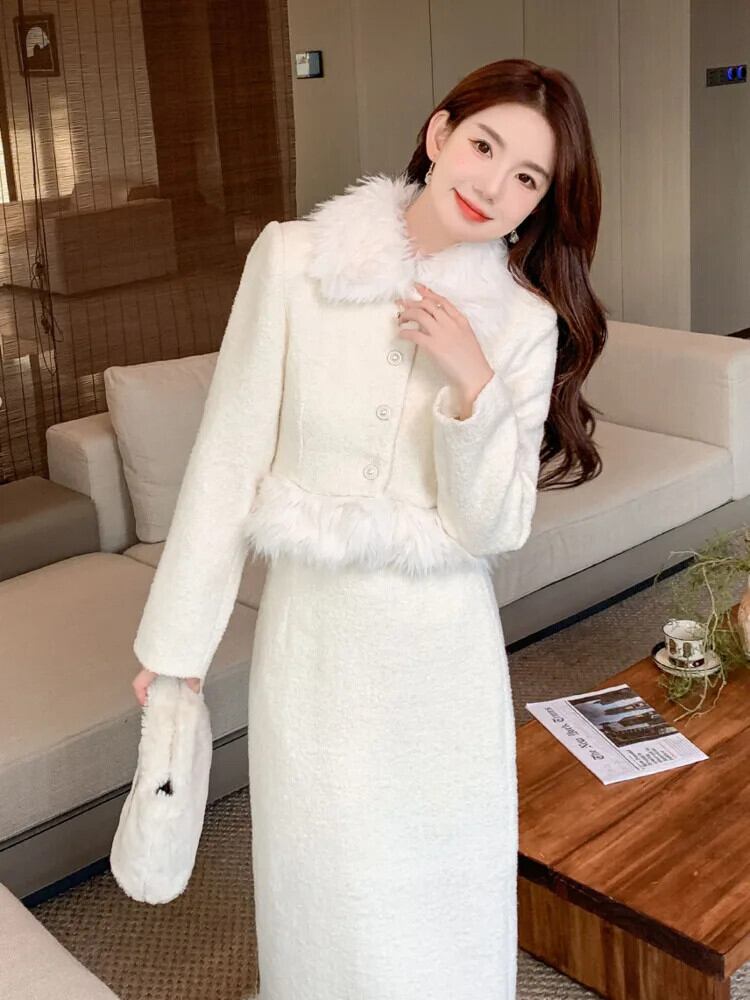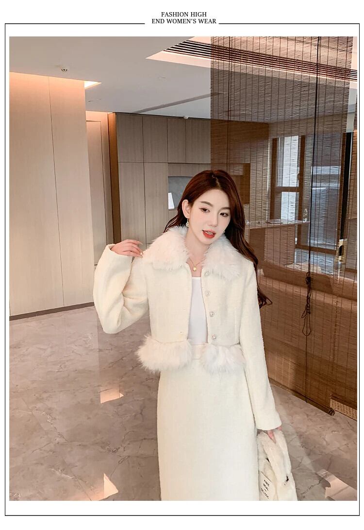 冬厚く暖かいぬいぐるみ 2 点セット衣装毛皮襟ジャケットコート + ロングスカート 2 点セット ウィンター 冬物