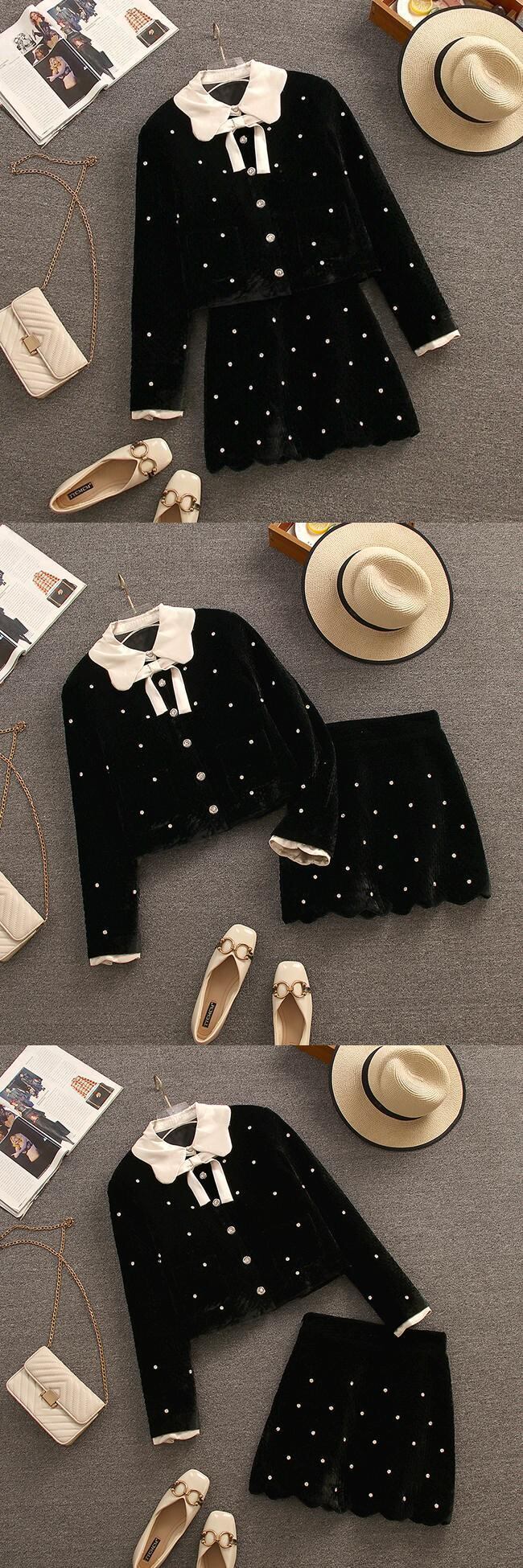 高級ベルベット 2 点セットボウジャケットコート + スカートスーツ 2 ピース衣装 Conjunto Femininos リボン