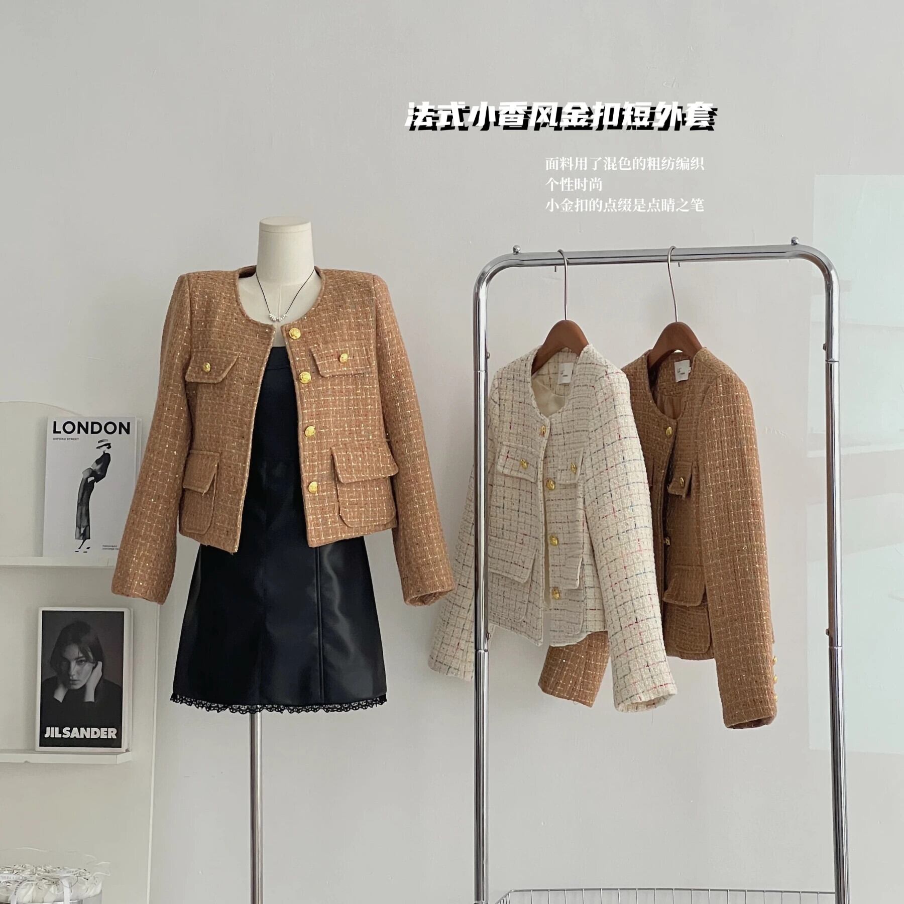 フランス小さ香りショートジャケット秋冬ツイードコートアウター Chaquetas オータム 秋物 ウィンター 冬物