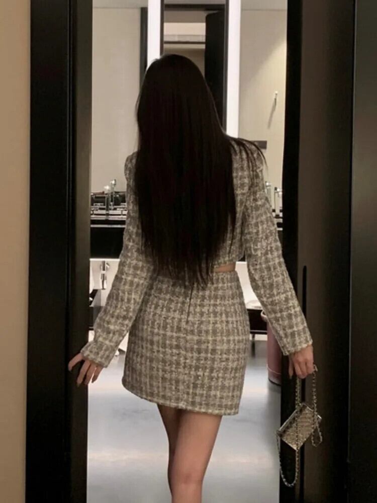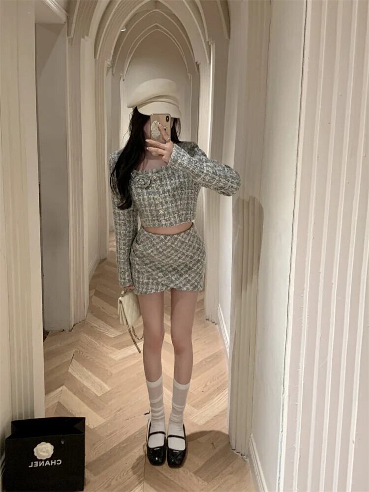 ストリートフレンチツイードツーピースセット3Dフラワージャケットコート+スカートスーツ甘い2ピース衣装 大人ガーリー スウィート キュート カジュアル フラワーデザイン