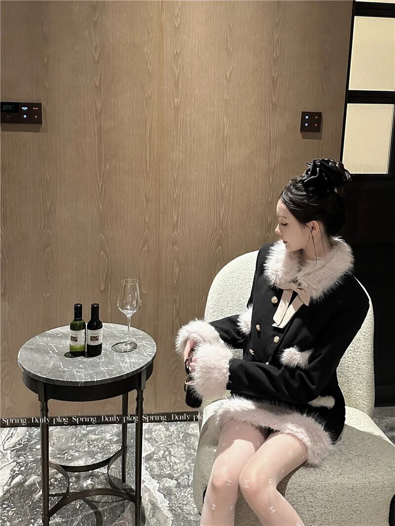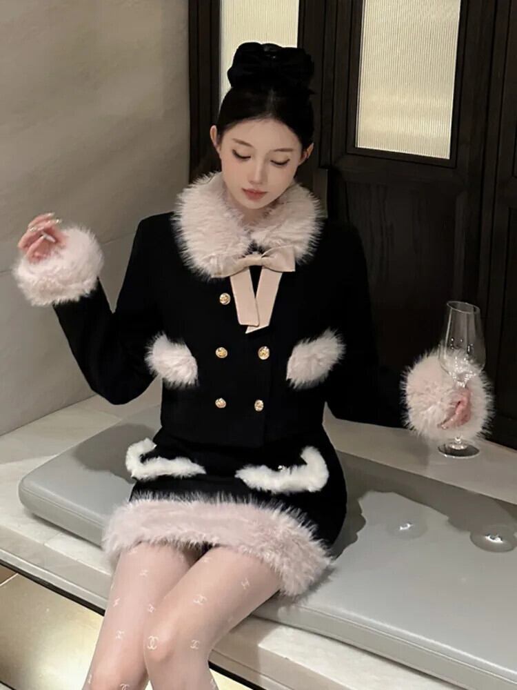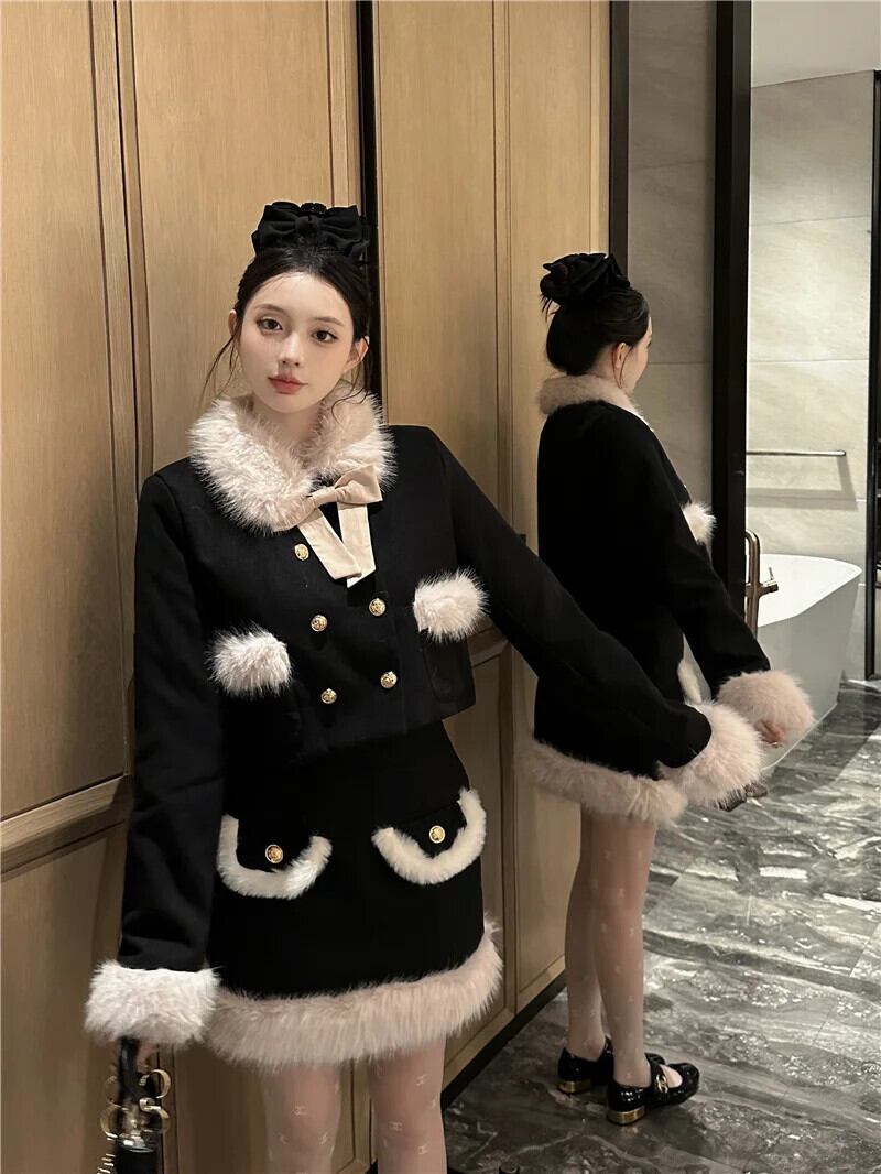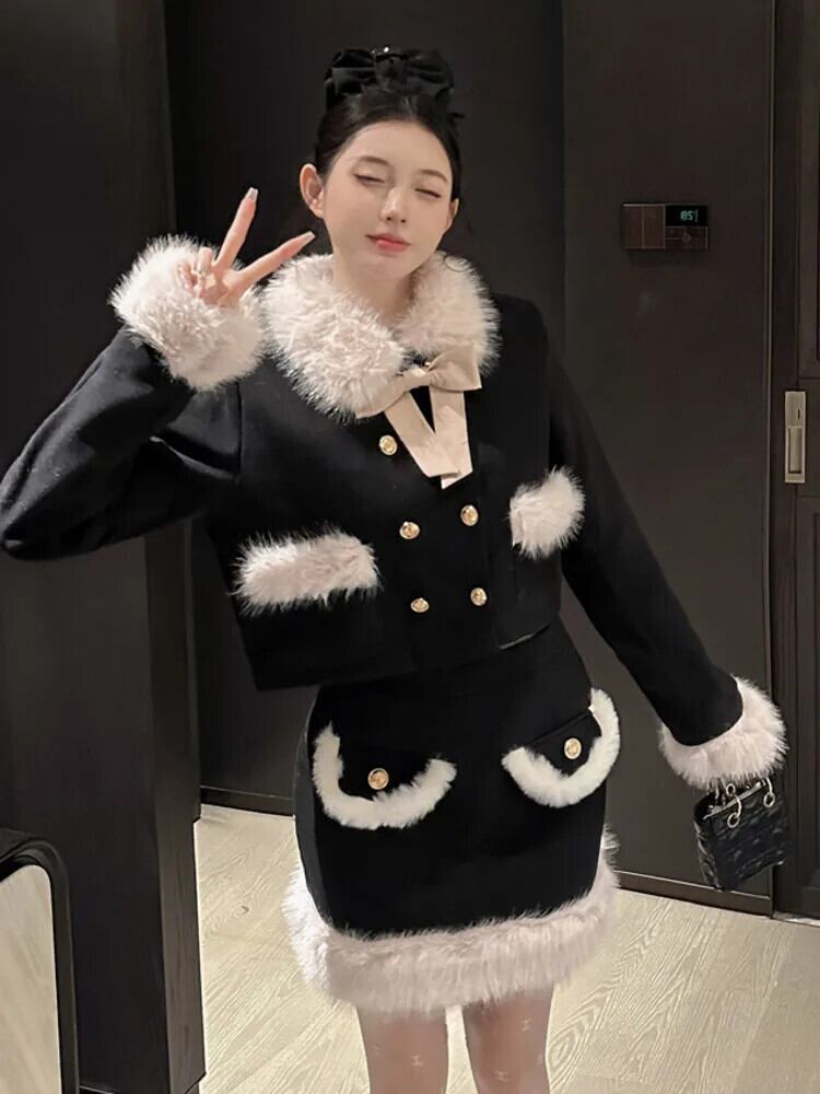 肥厚冬小さ香りツーピースセットショートジャケットコート + スカートスーツ 2 ピース衣装 ウィンター 冬物