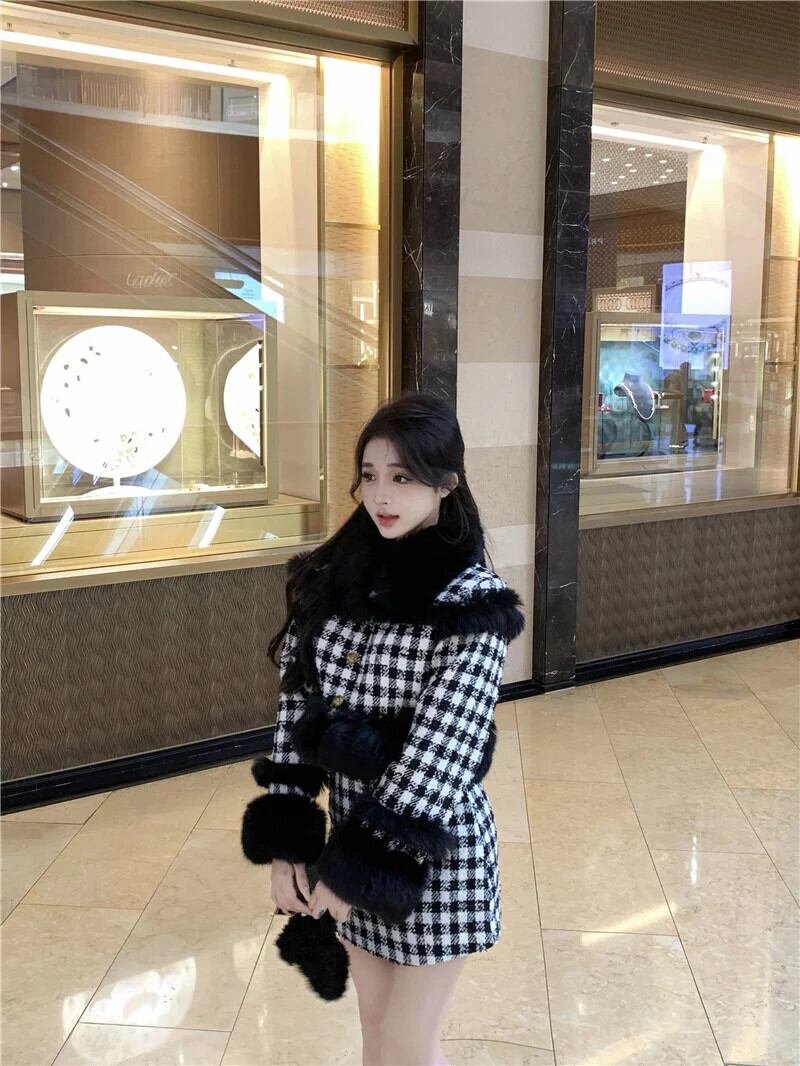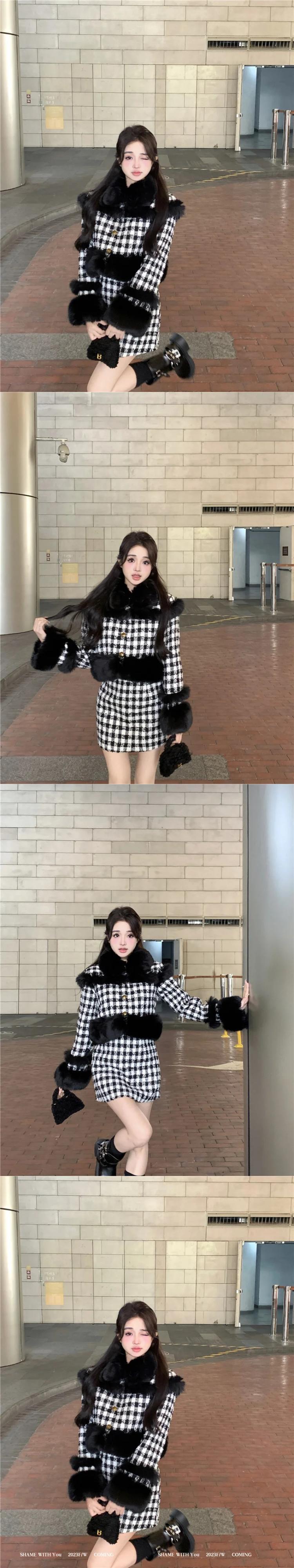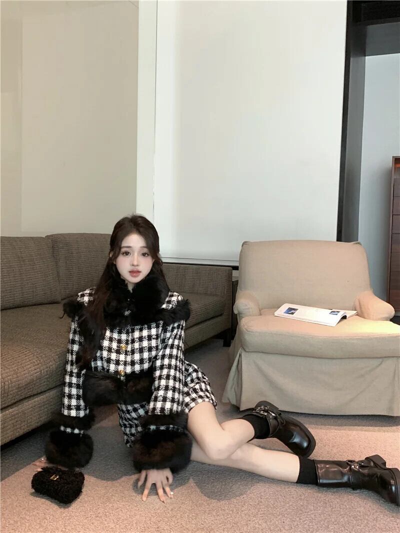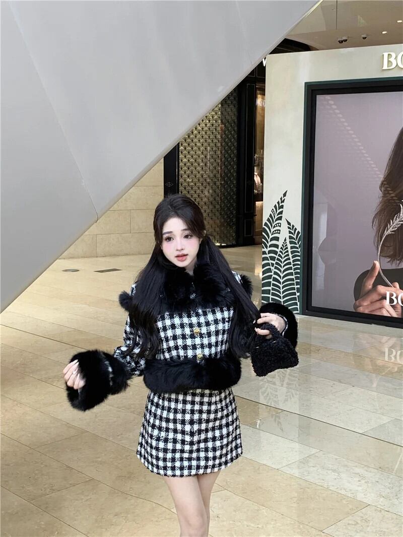 小さ香り厚い暖かい冬 2 点セットフェイクファージャケットコート + スカートツーピース衣装 ウィンター 冬物