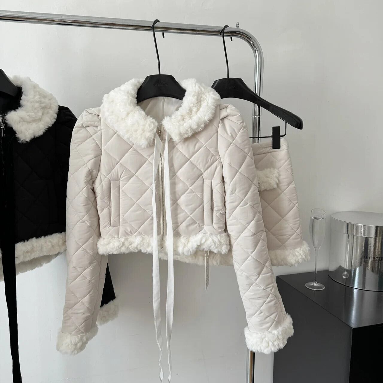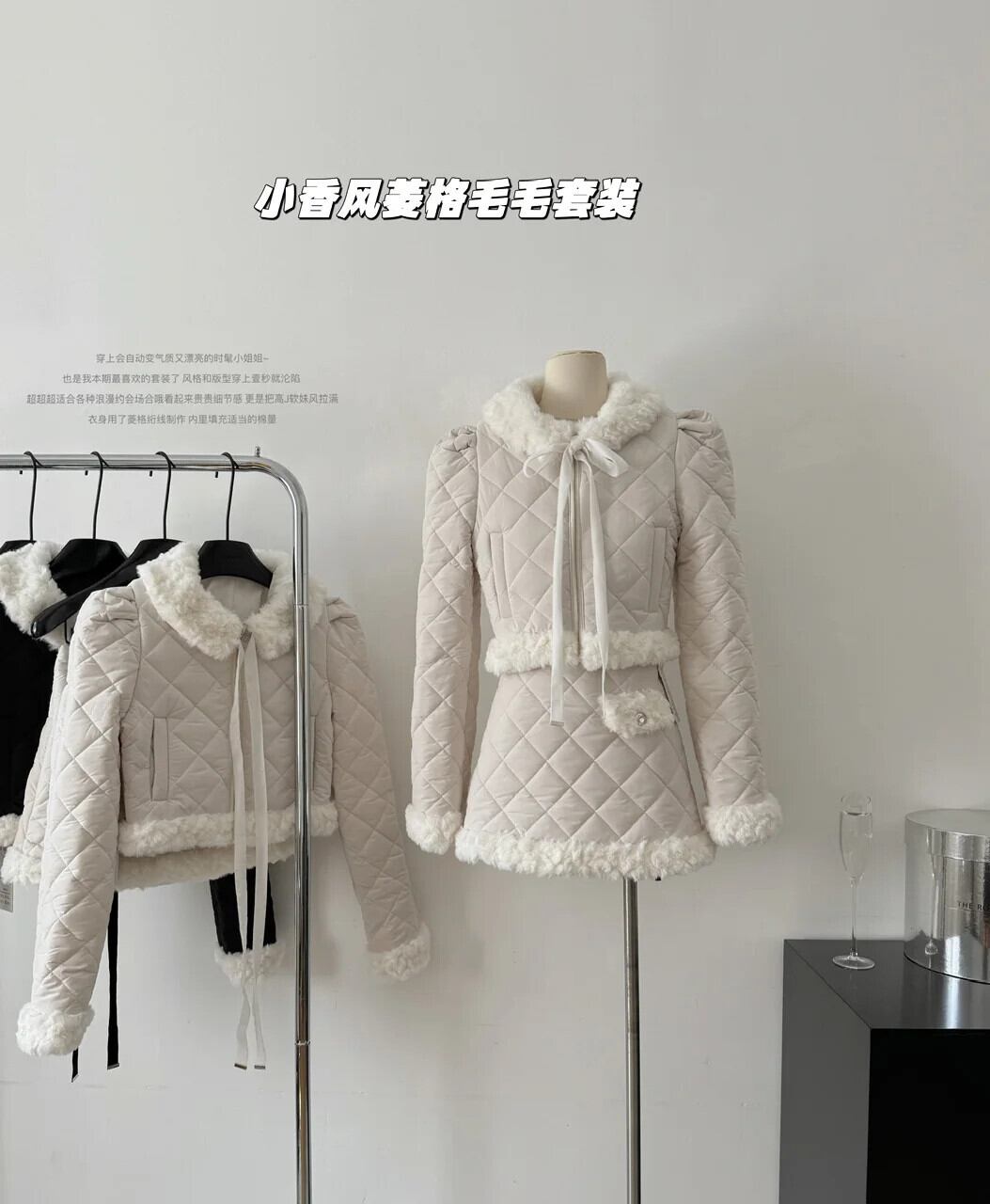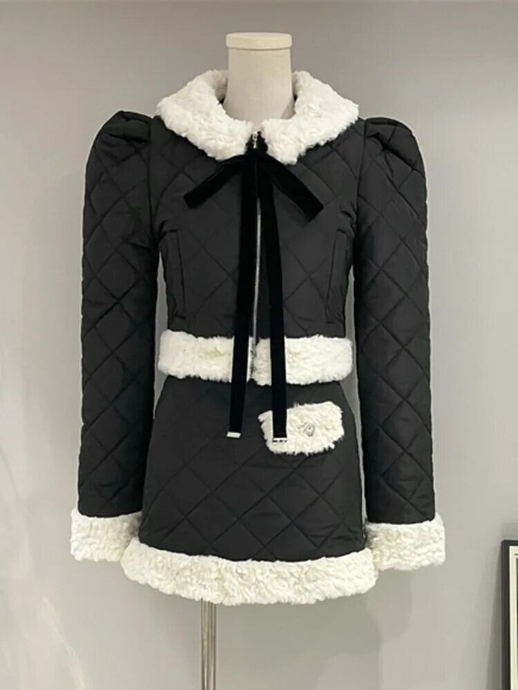 冬厚く暖かい 2 点セット弓ショートパーカージャケットコート + ウエストスカート 2 ピース衣装 リボン ウィンター 冬物