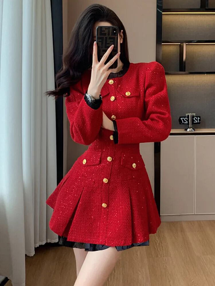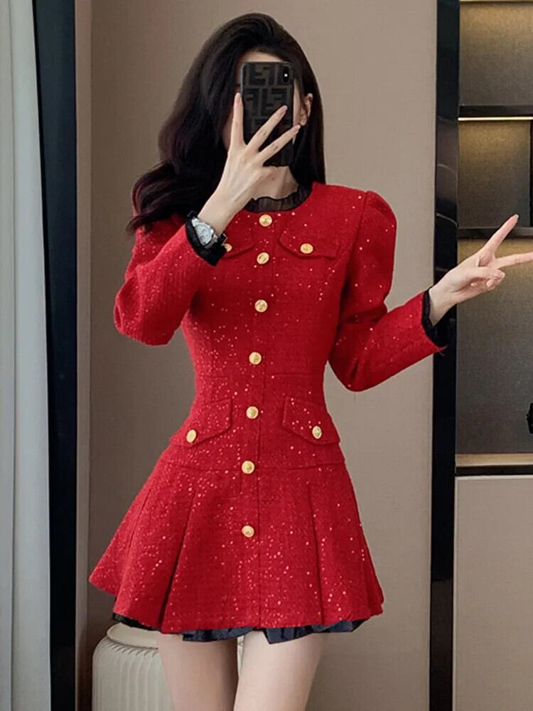 高級小さ香りツイードドレス秋冬甘いパーティードレス Vestidos ローブ Roupas 大人ガーリー スウィート キュート カジュアル オータム 秋物 ウィンター 冬物