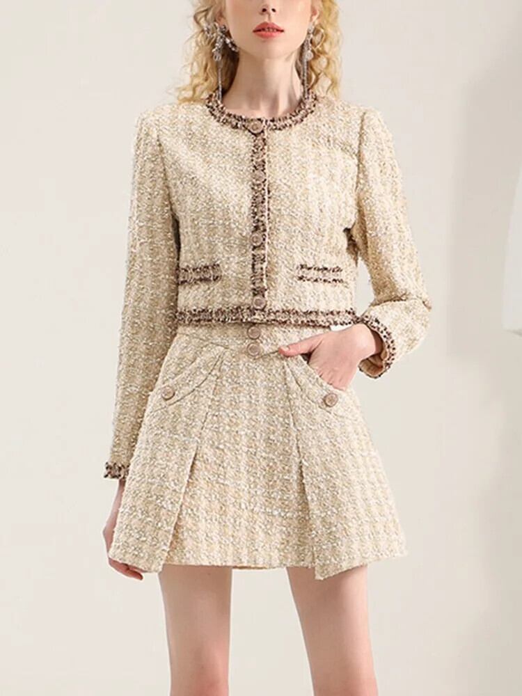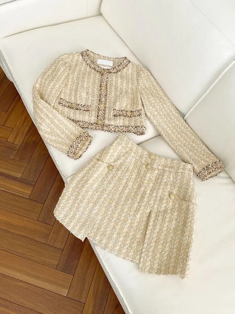 ストリート高級 2 点衣装セット Conjuntos Femininos フレンチ ツイード ジャケット コート + スカート スーツ