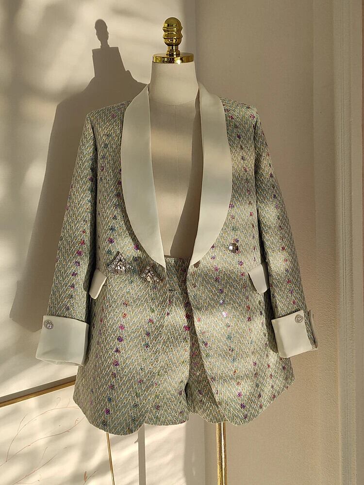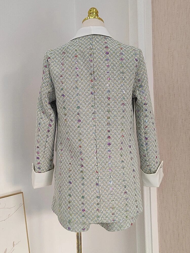 高級スパンコール 2 点セットブレザー コート & ショート セット フレンチ スモール フレグランス 2 ピース パンツ セット