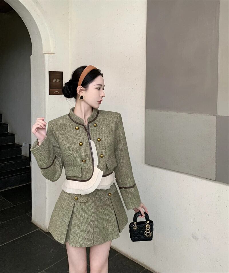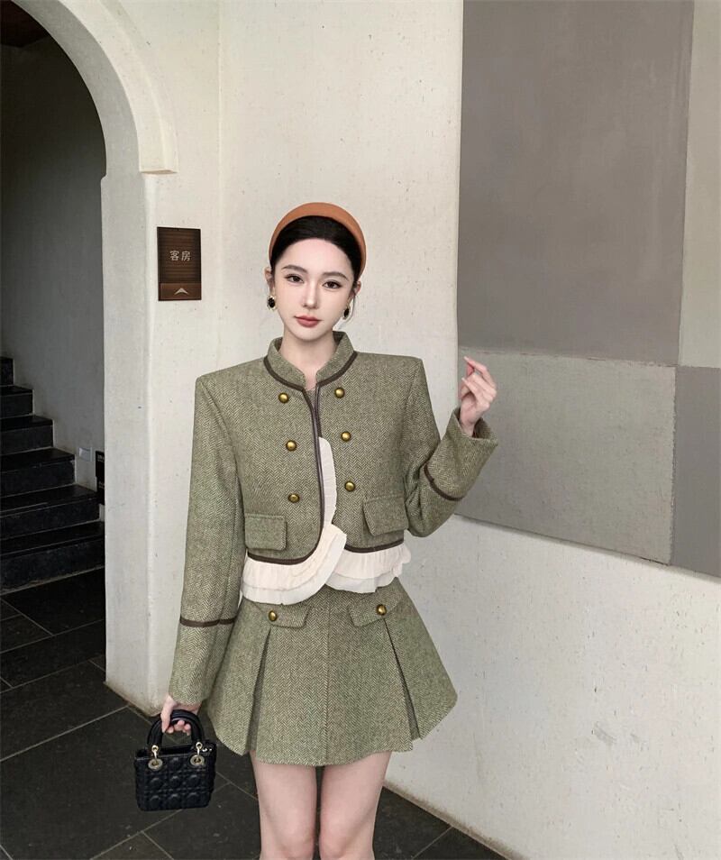 秋冬フレンチツーピースセットジャケットコート+スカート2ピーススーツConjuntos Femininos es ウィンター 冬物