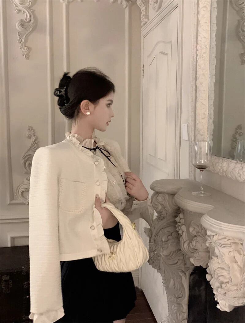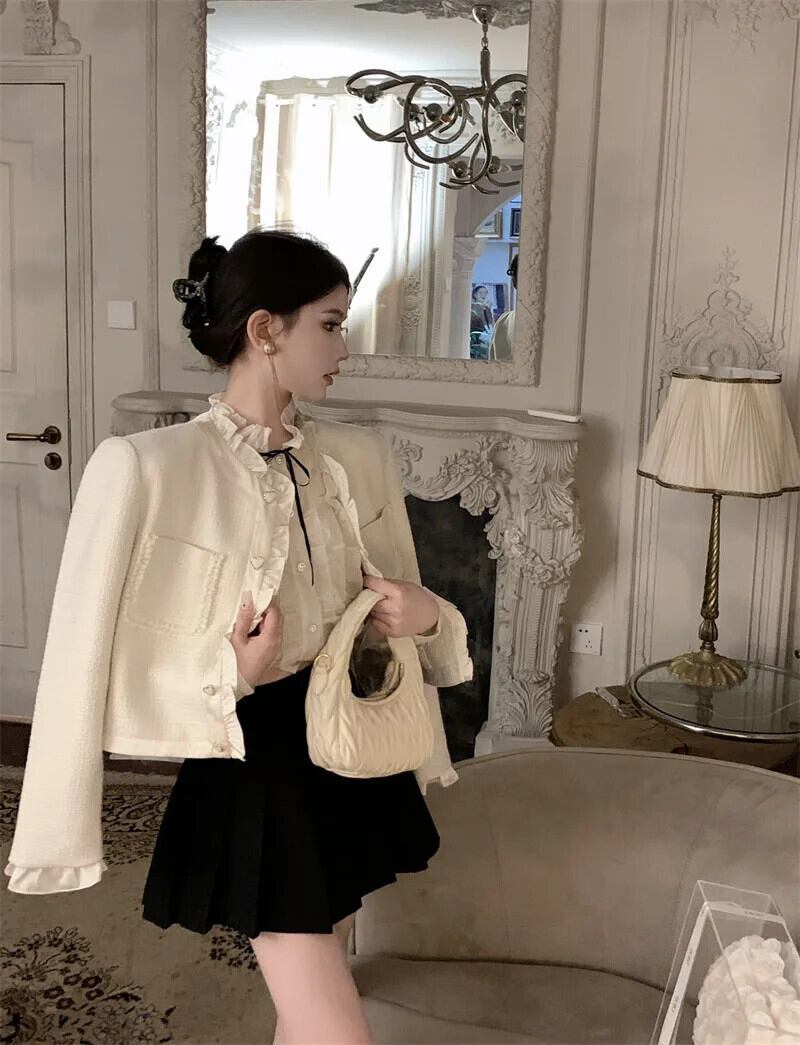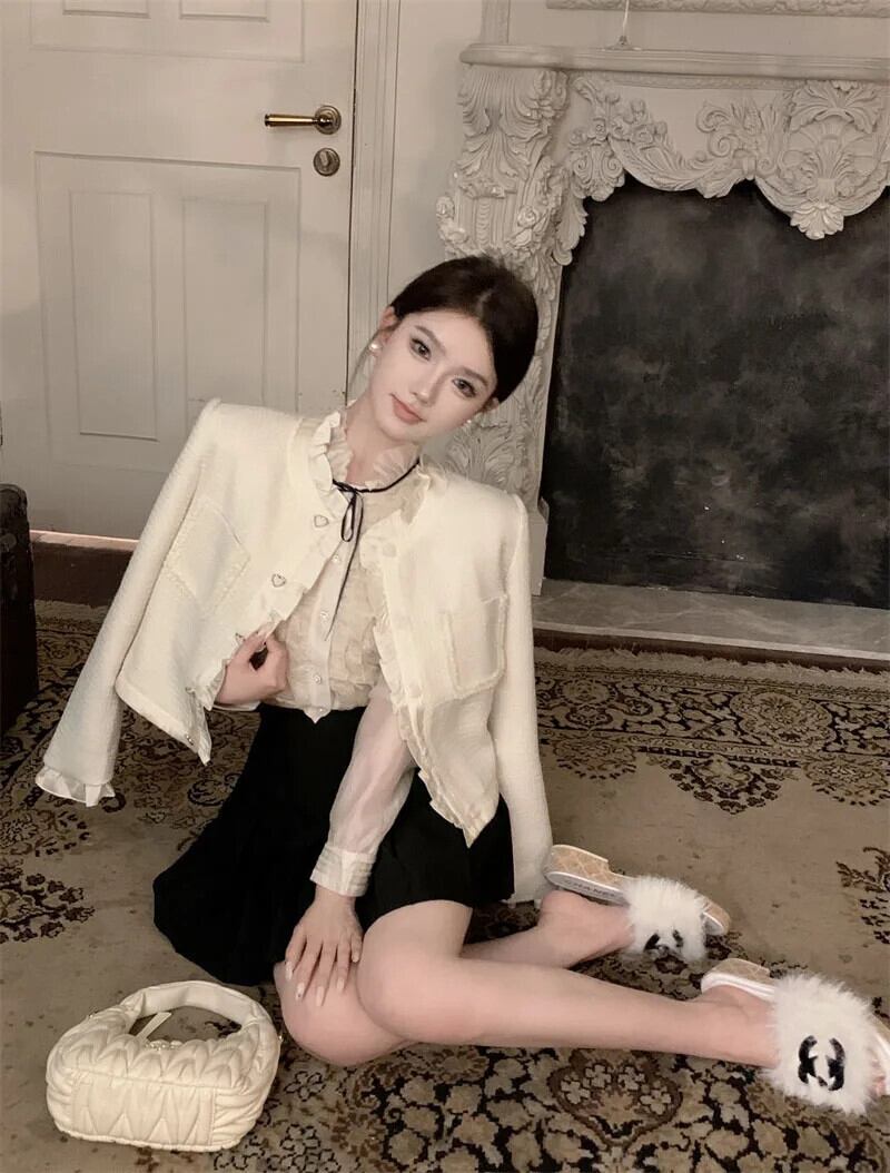 秋冬フレンチ高級スモールフレグランスツイードジャケット甘いショートコートルーズアウター 大人ガーリー スウィート キュート カジュアル オータム 秋物 ウィンター 冬物