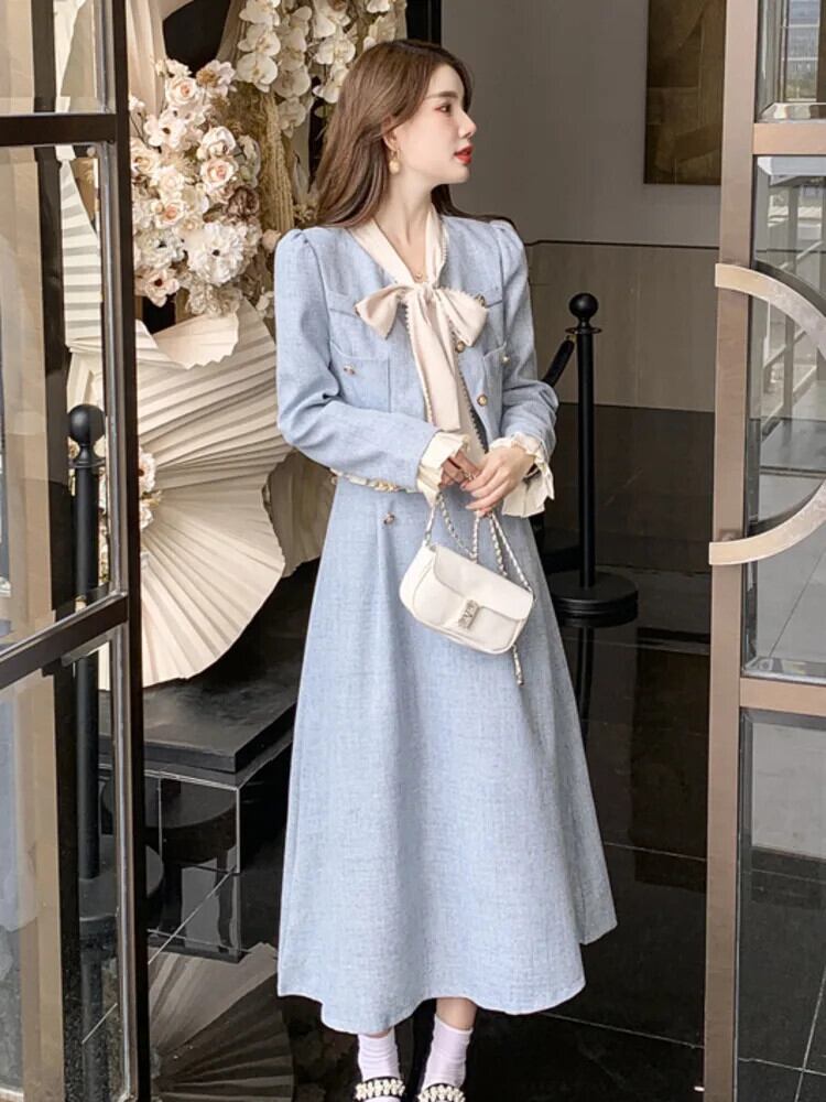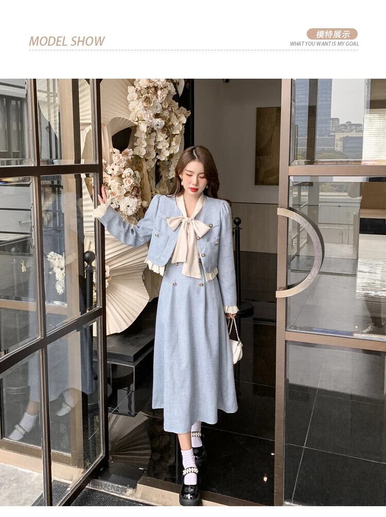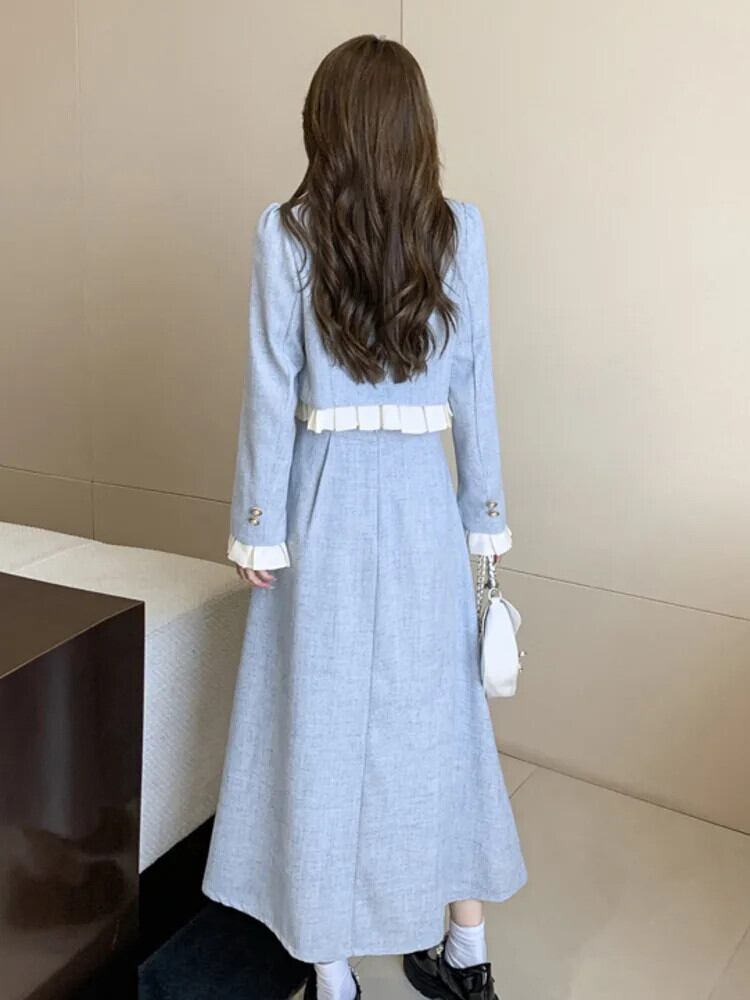 秋冬スイート 2 点セットジャケット コート + ロングスカート 2 ピース スーツ Conjuntos Femininos 大人ガーリー スウィート キュート カジュアル ウィンター 冬物