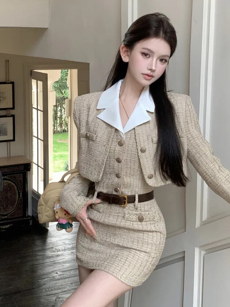 秋冬衣装ツーピースセットショートジャケットコート+ドレス2点セットWomne衣装 オータム 秋物 ウィンター 冬物