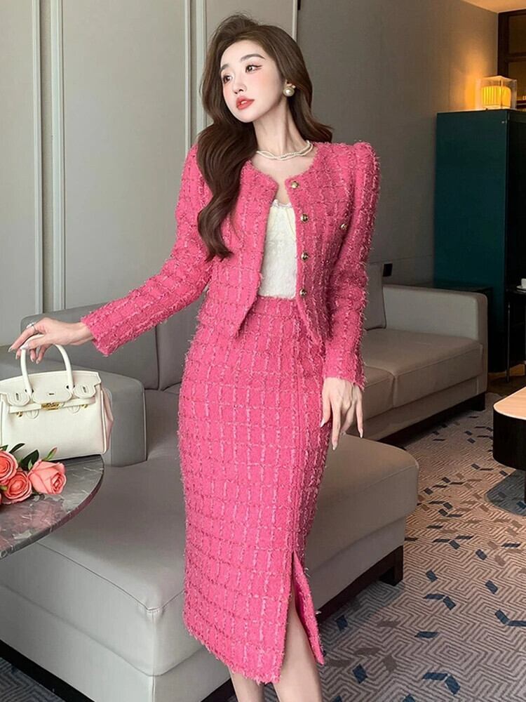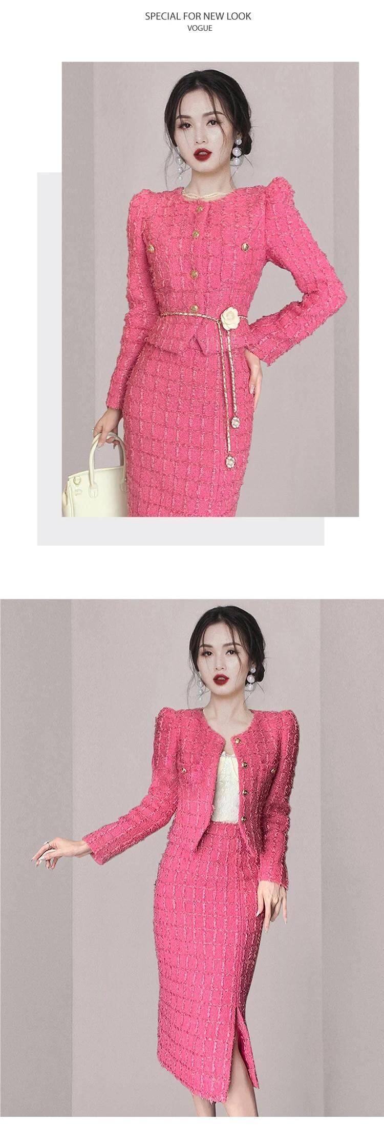 フレンチスモールフレグランスツイード2点セット衣装ショートジャケットコート+ボディコンスカートツーピーススーツ