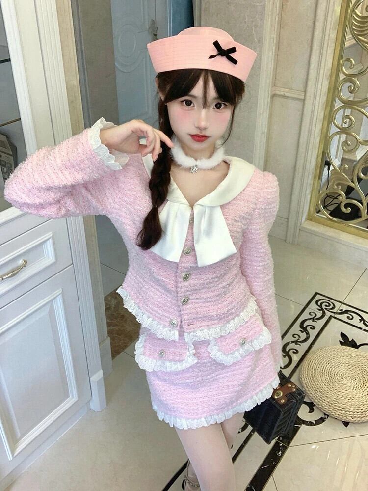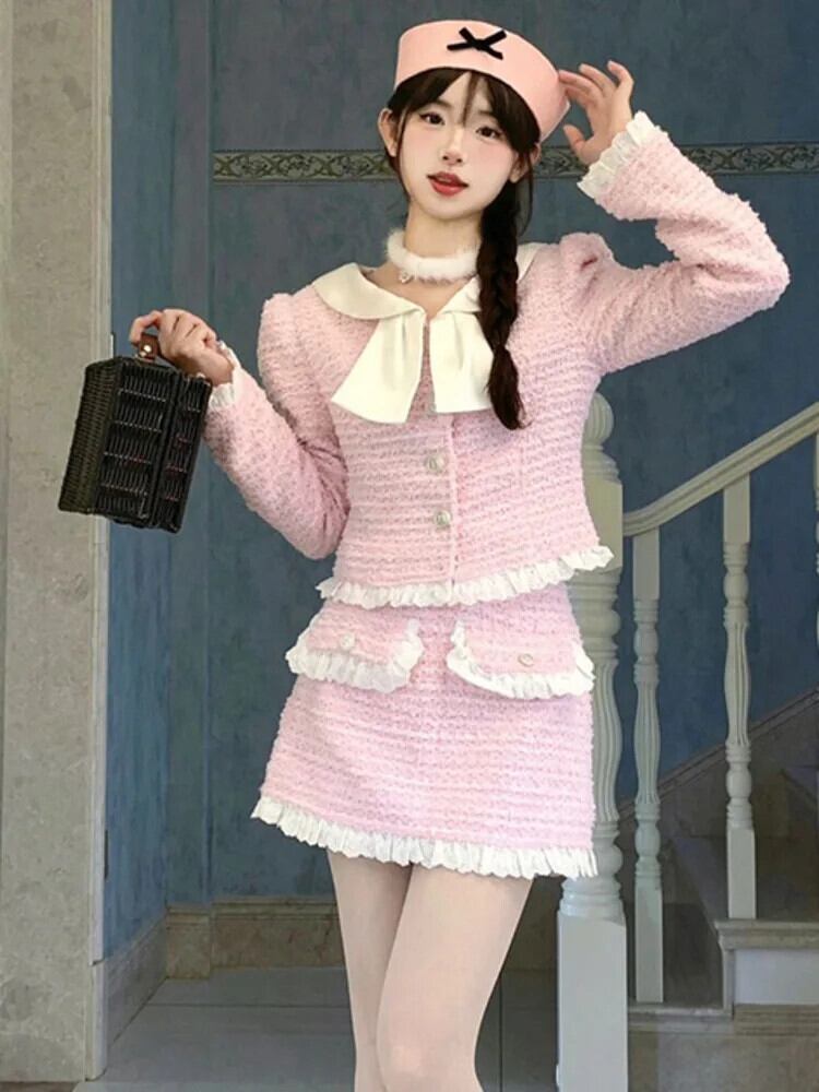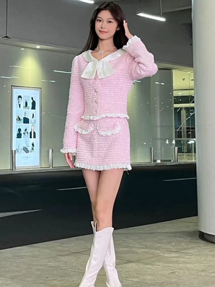秋冬ツイード 2 点セット衣装甘いジャケットコート + ミニスカート conjuntos femininos エレガンテス 大人ガーリー スウィート キュート カジュアル エレガント オータム 秋物 ウィンター 冬物