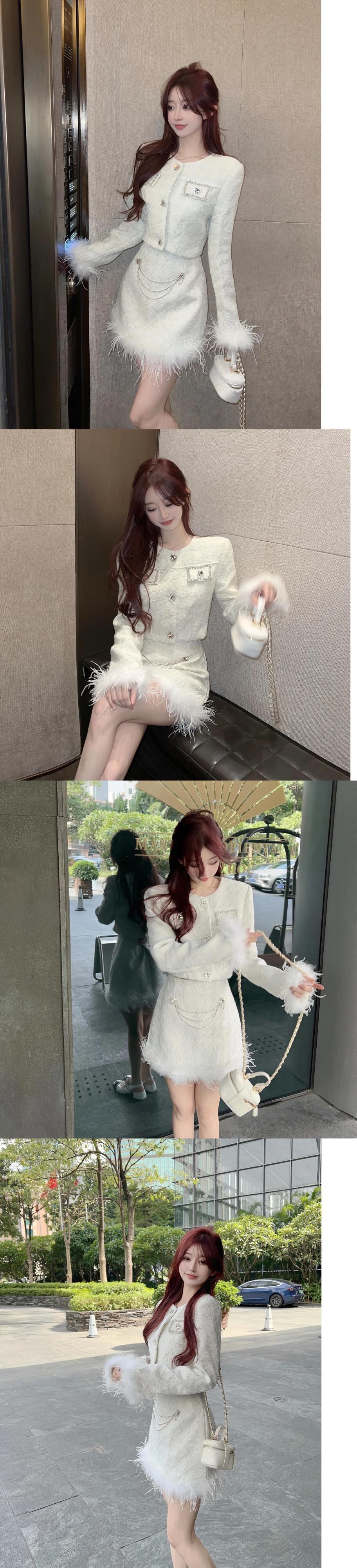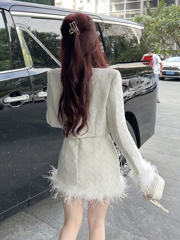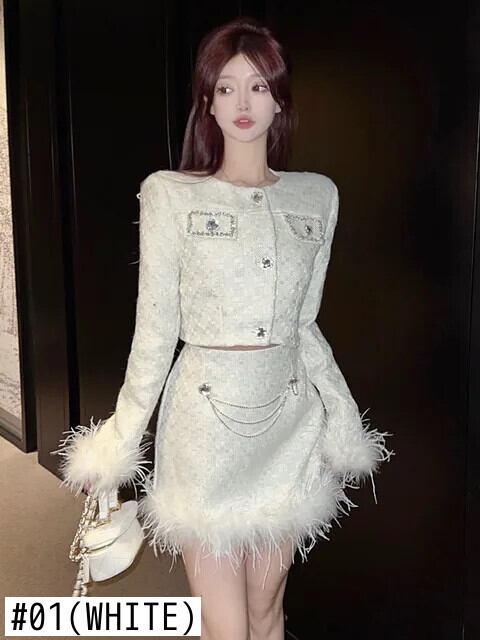 秋冬小さフレグランツイード 2 ピースセット衣装ストリート羽ジャケットコート + スカートツーピーススーツ オータム 秋物 ウィンター 冬物