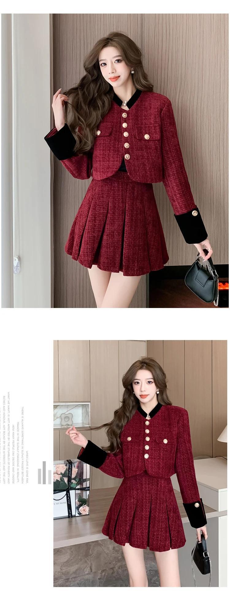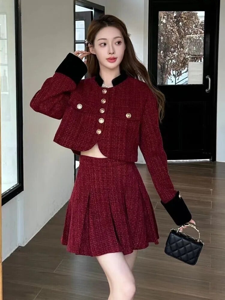 ツイード 2 点セット冬厚い Conjuntos Femininos es ジャケットコート + スカート 2 点衣装 ウィンター 冬物