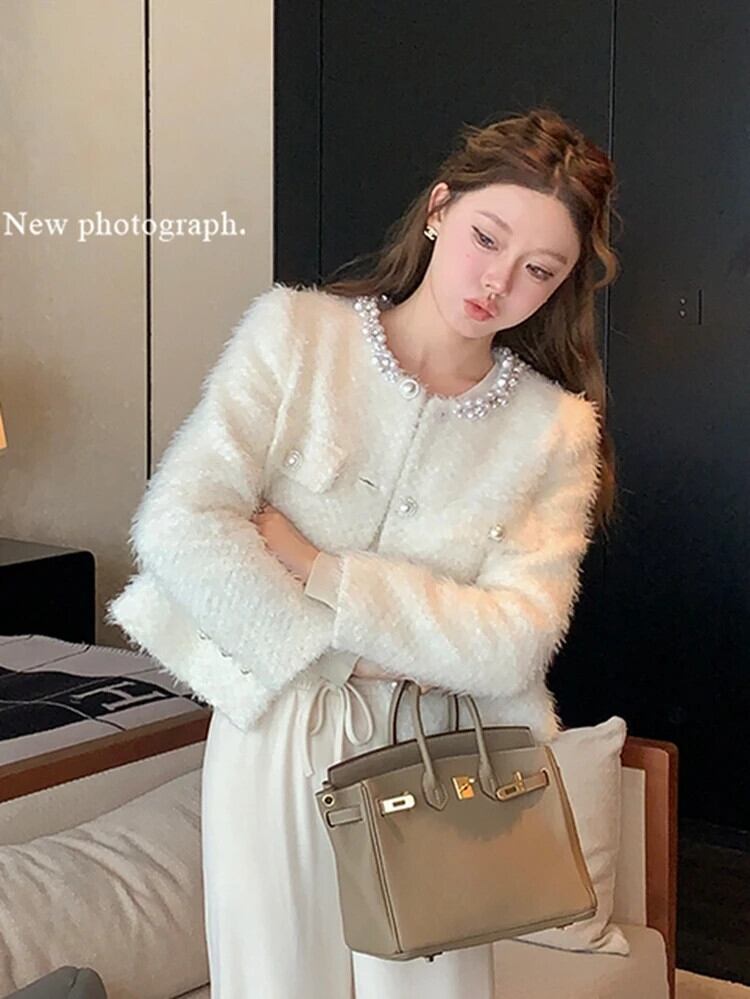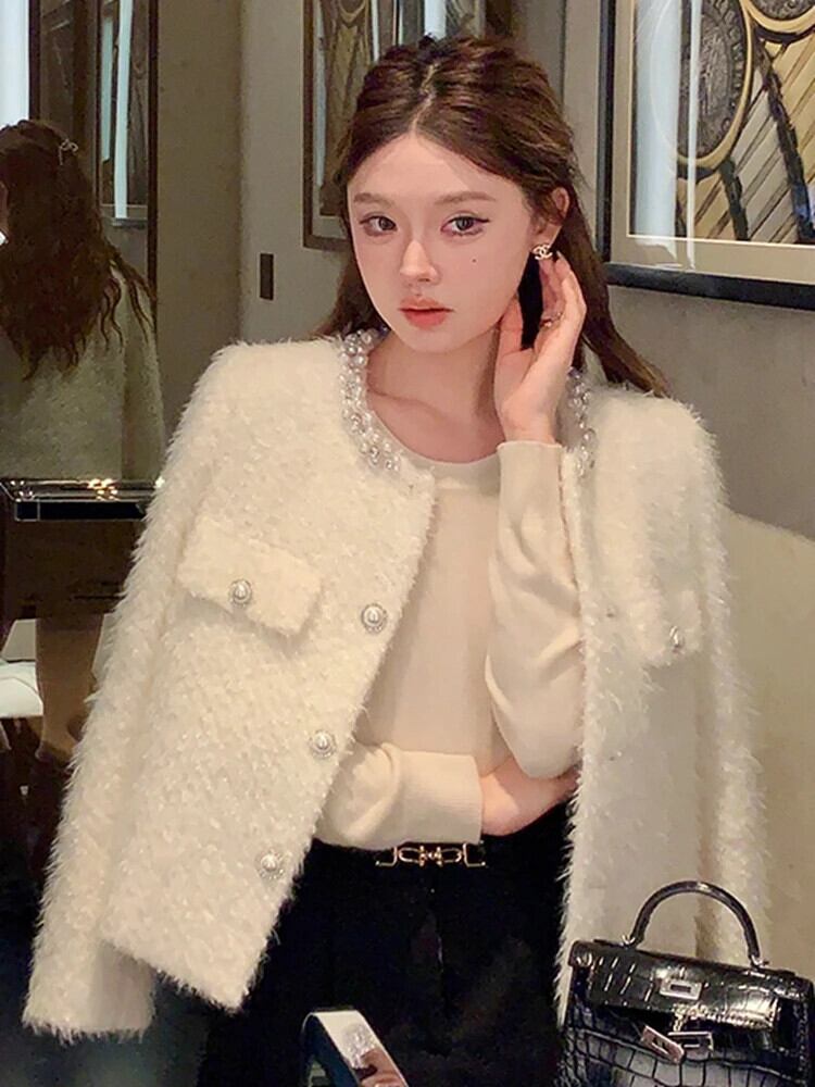 高級ビーズツイードジャケット秋冬フライドストリートショートコートガール甘いアウター Chaquetas 大人ガーリー スウィート キュート カジュアル オータム 秋物 ウィンター 冬物