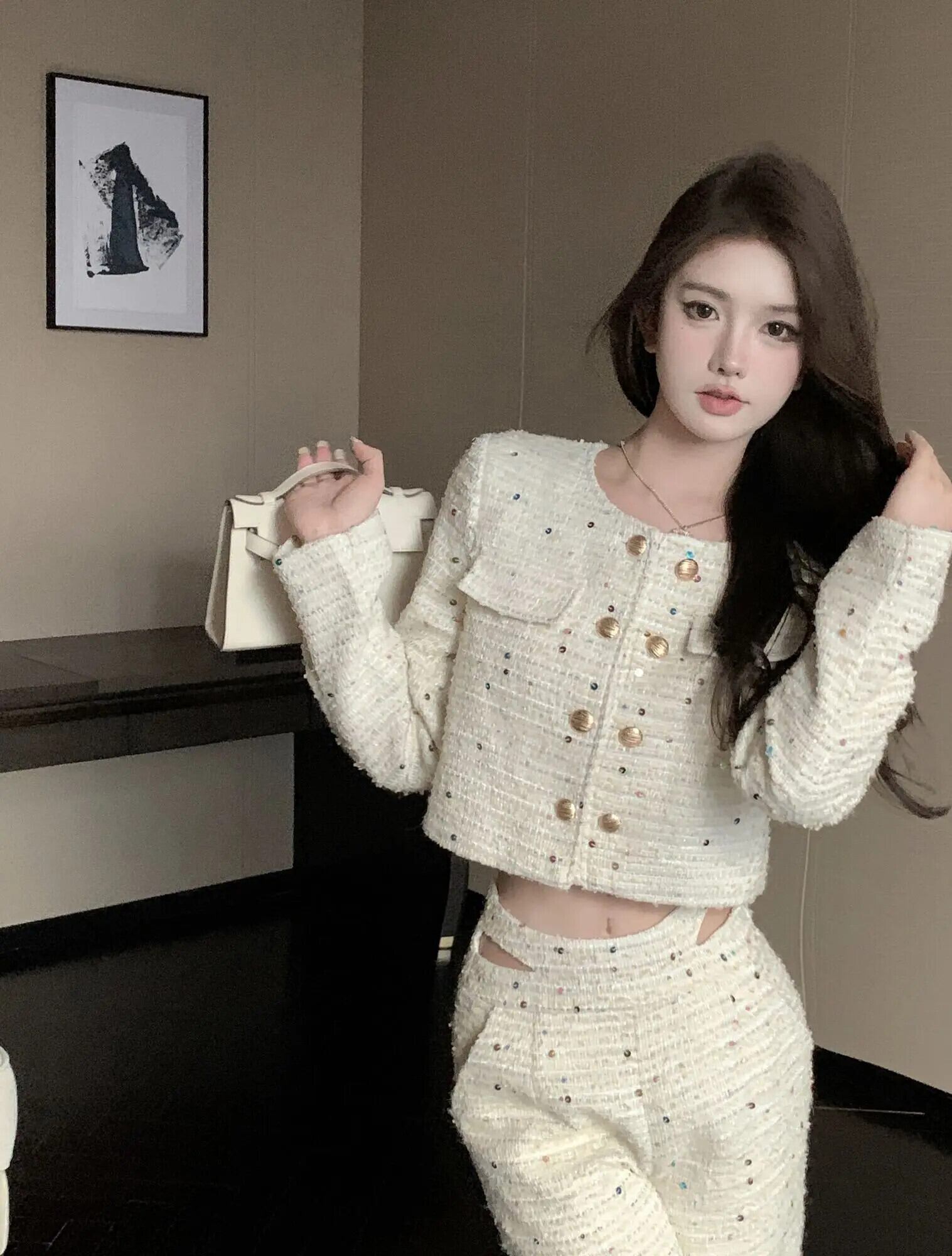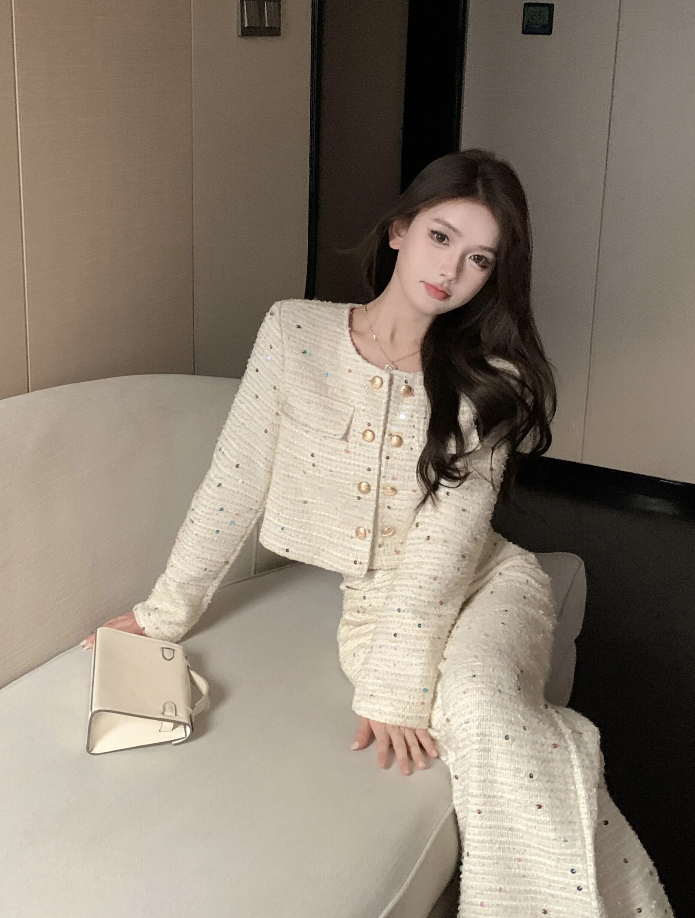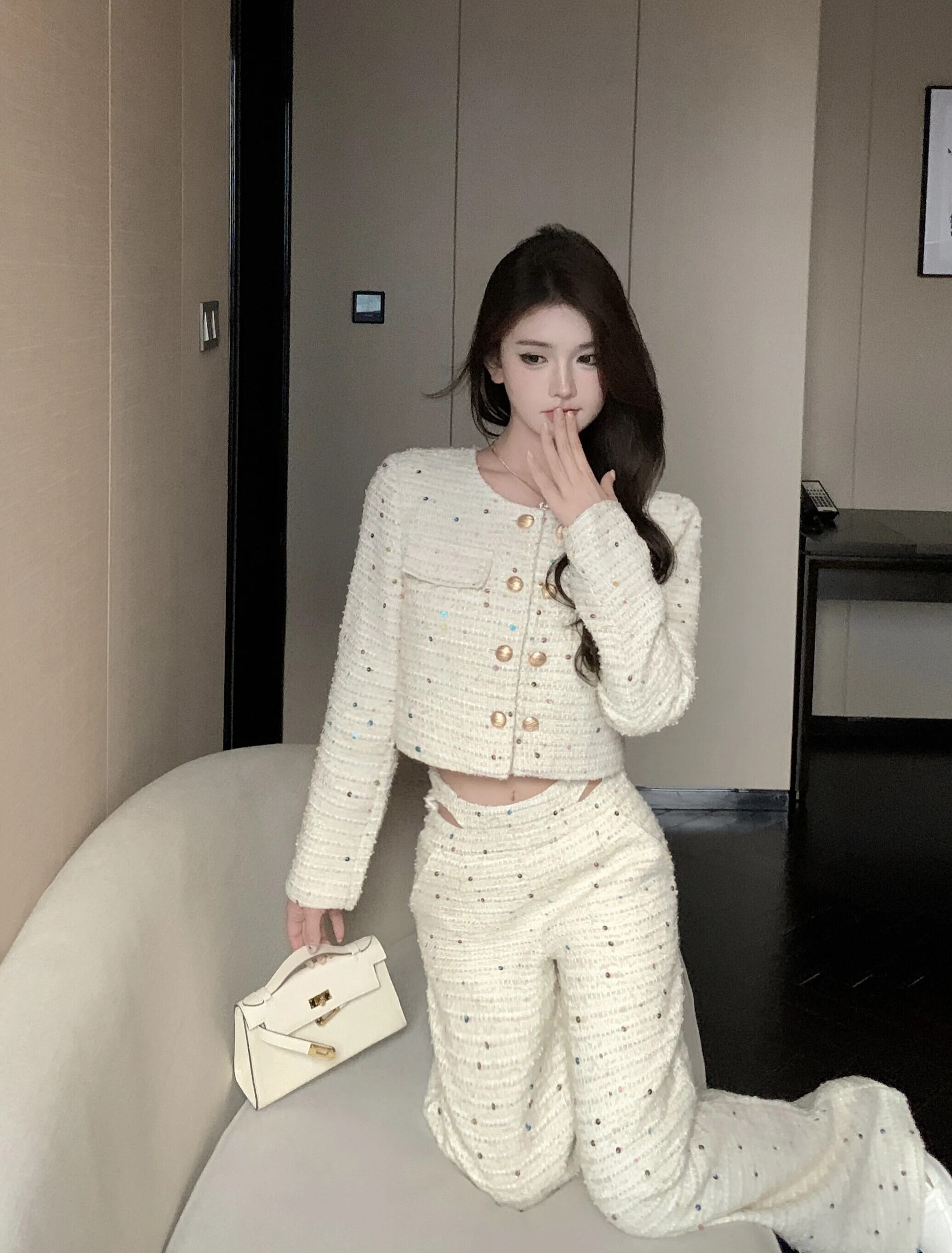 ストリート高級 2 点衣装セット Conjuntos Femininos ツイード ジャケット コート + パンツ セット
