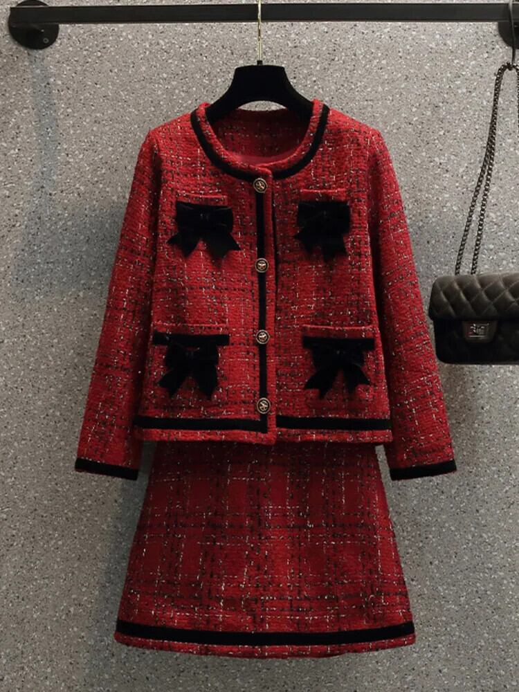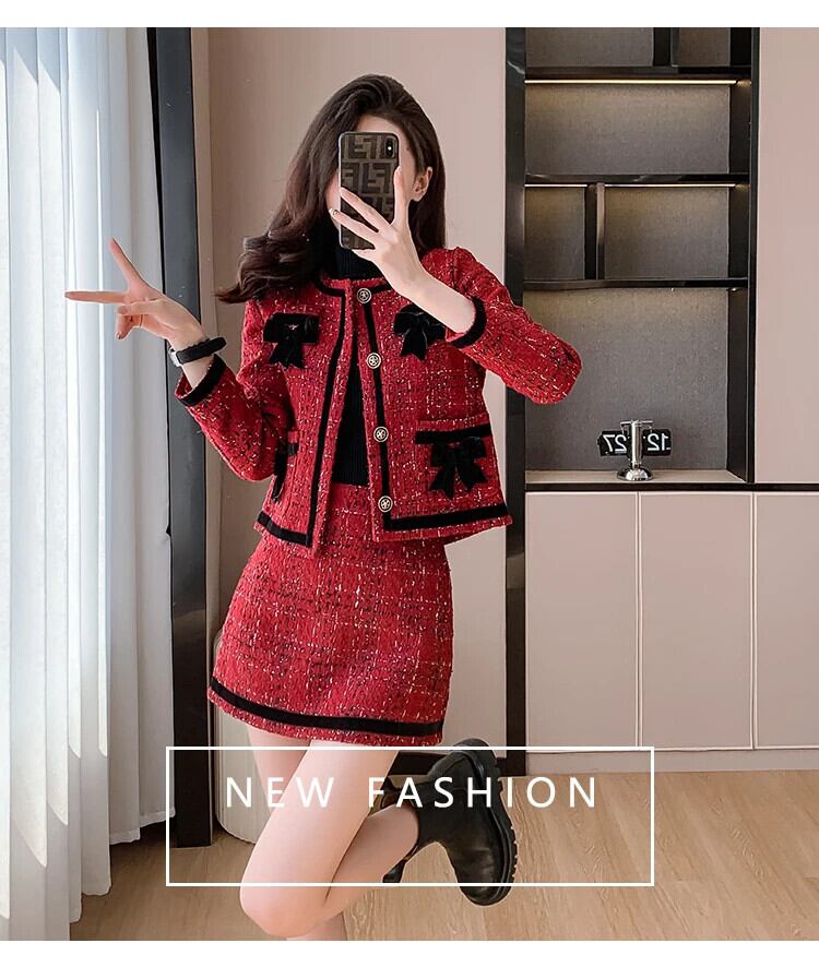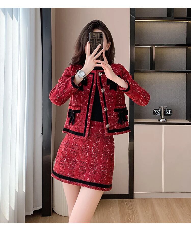 甘い小さフレグランスツイード 2 点セットウールジャケットコート + スカート 2 点セット衣装 大人ガーリー スウィート キュート カジュアル