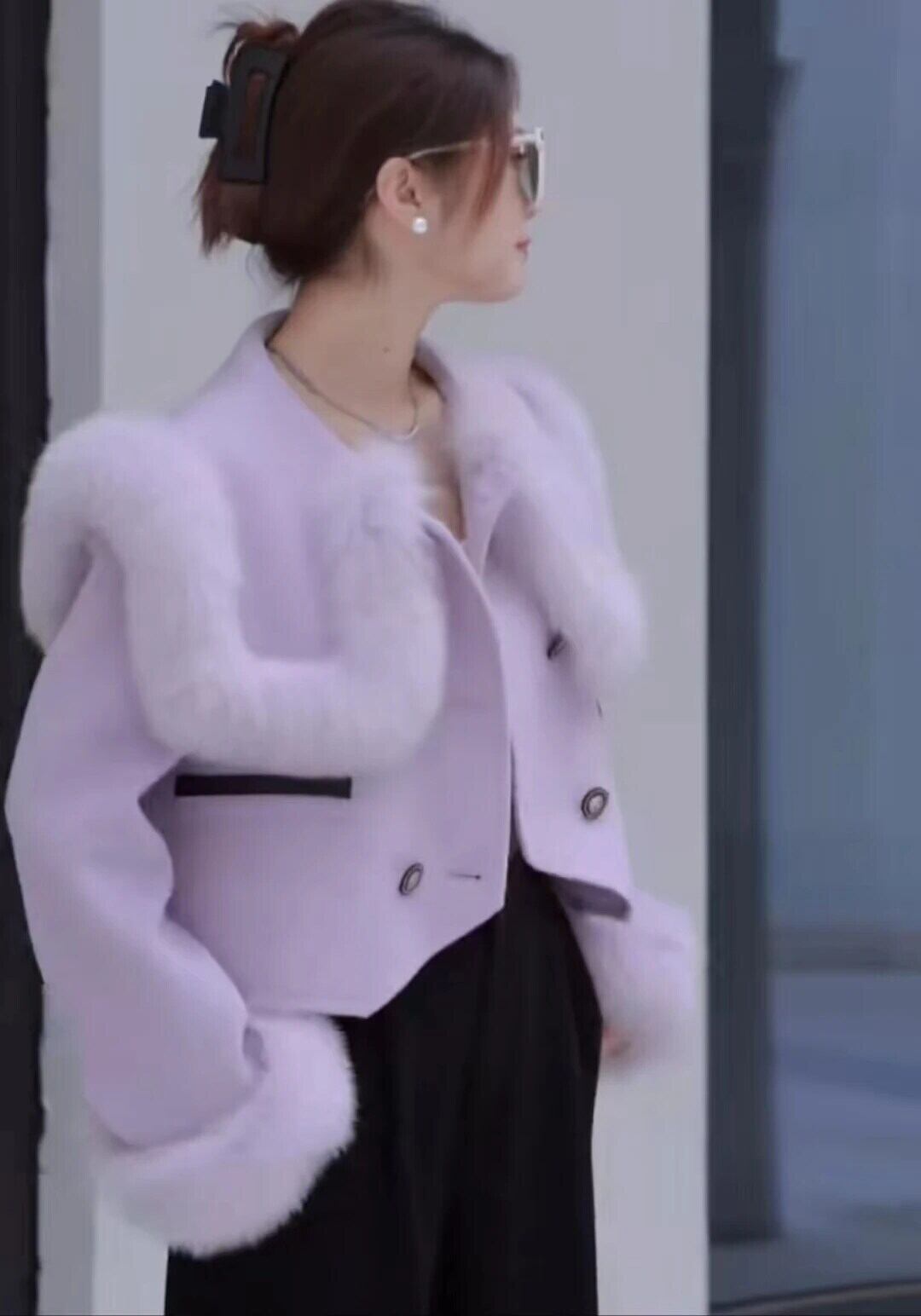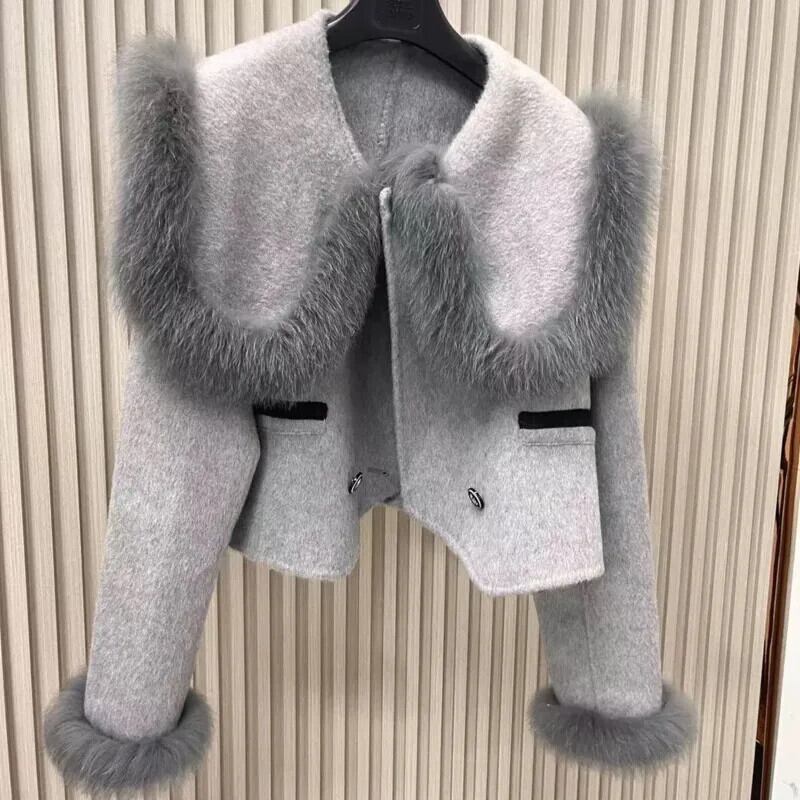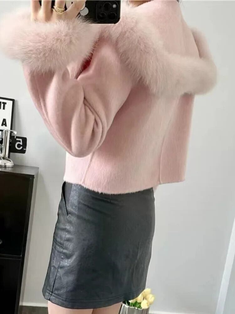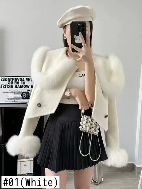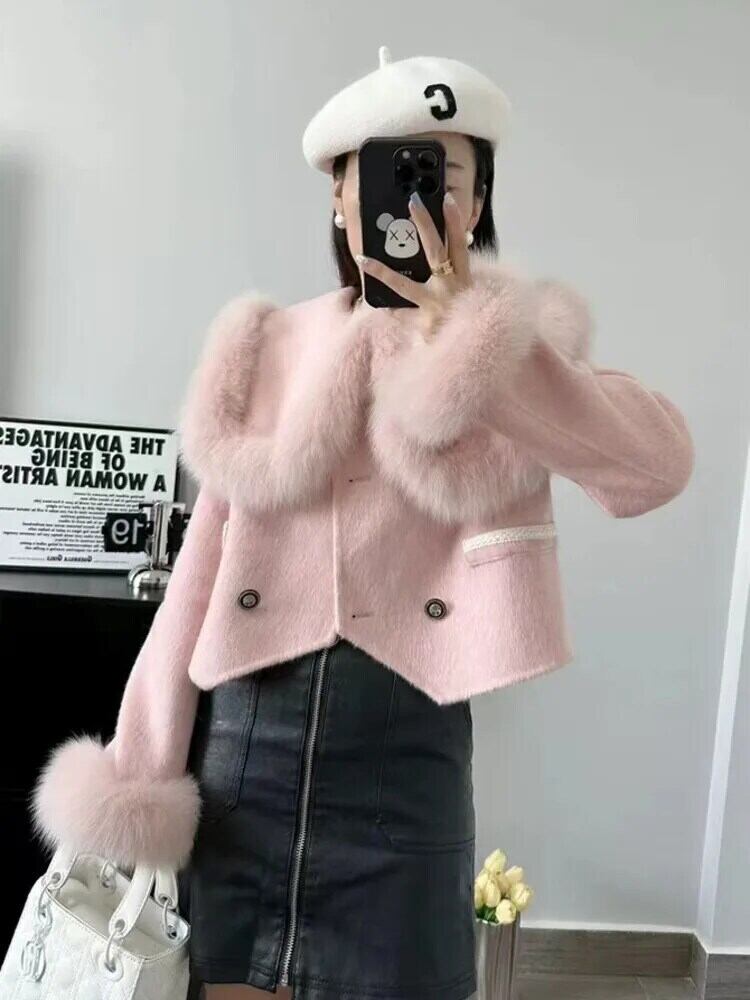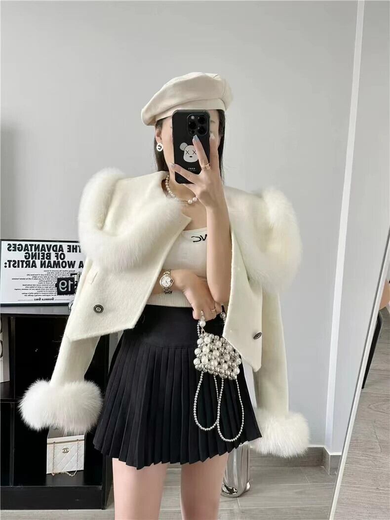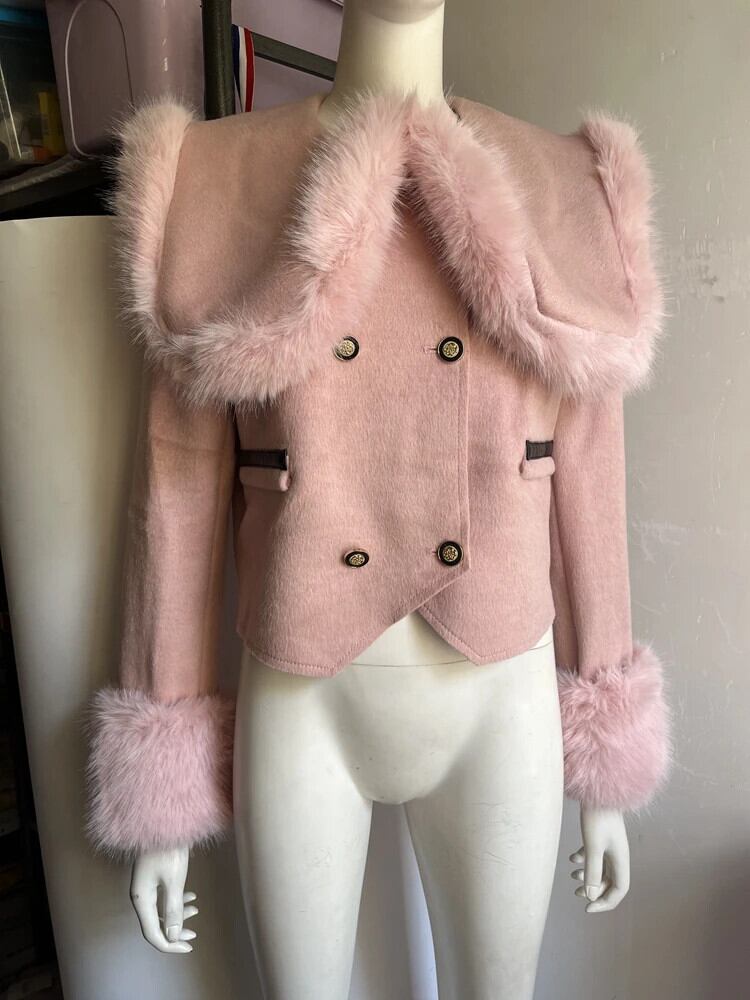 冬コートフェイクファービッグラペルダブルブレスト暖かいウールコート甘いアウター Chaquetas 大人ガーリー スウィート キュート カジュアル ウィンター 冬物